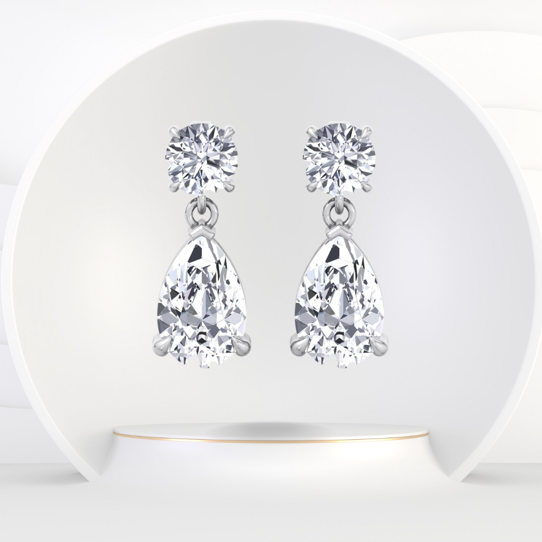 - Wynn - Oval and Pear Shape Diamond Drop Earrings