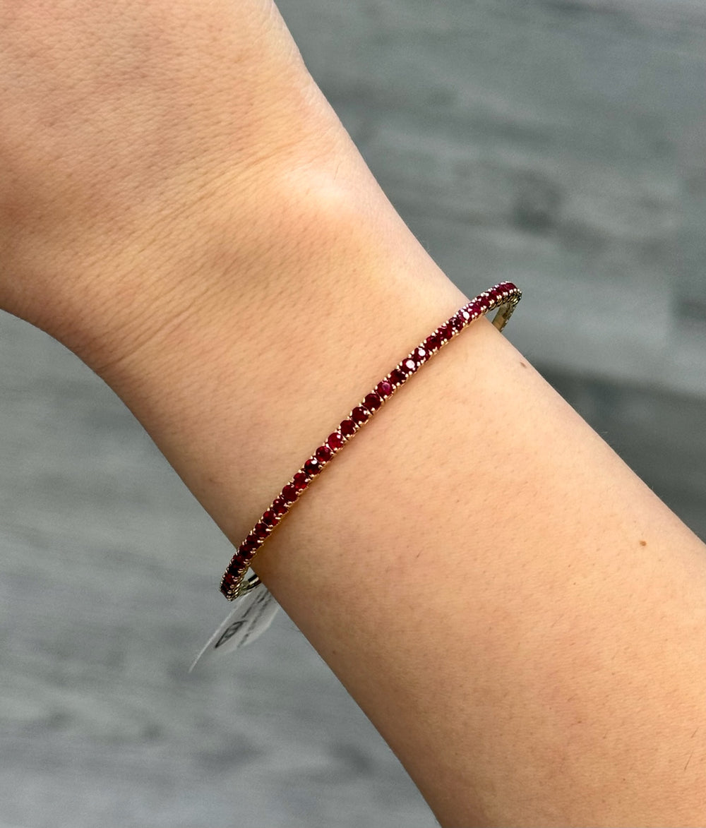 - Rossa - Flexible Natural Red Ruby Bangle in 14K Solid Gold