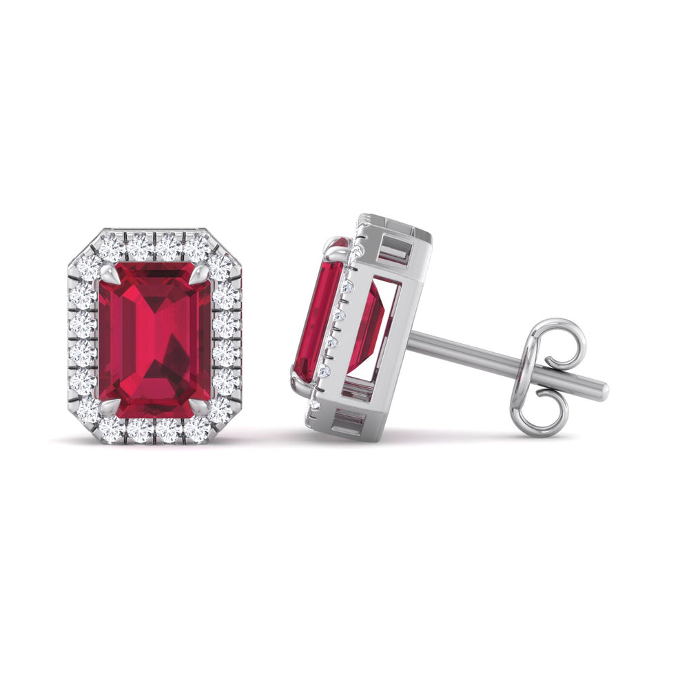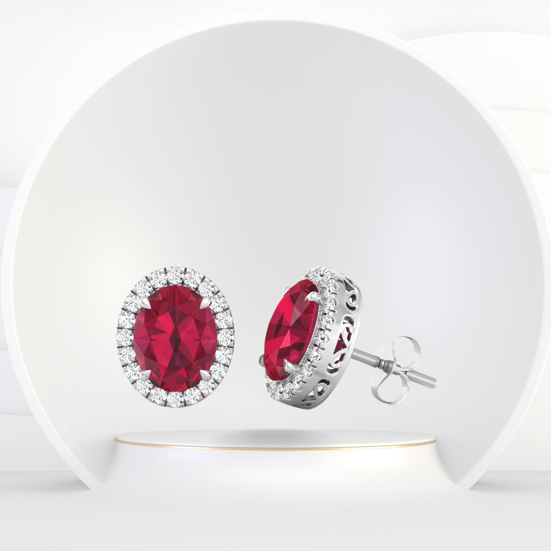 Tavo - Round Cut Ruby & Diamond Halo Earrings