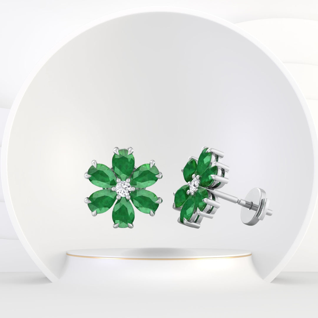 Favi - Pear Shaped Emerald & Diamond Cluster Earrings