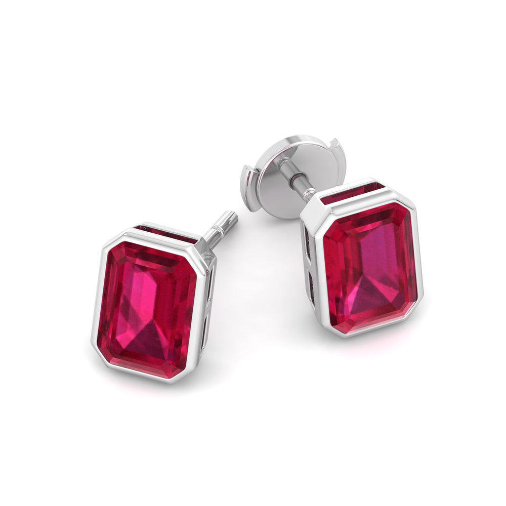 Cilie - Emerald Cut Ruby Bezel Set Earrings