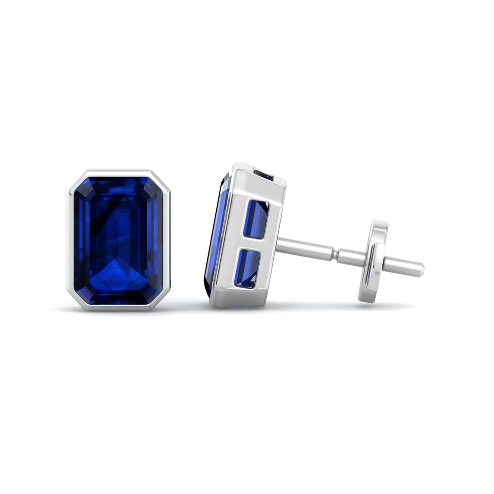 Cubo - Emerald Cut Sapphire Bezel Set Earrings