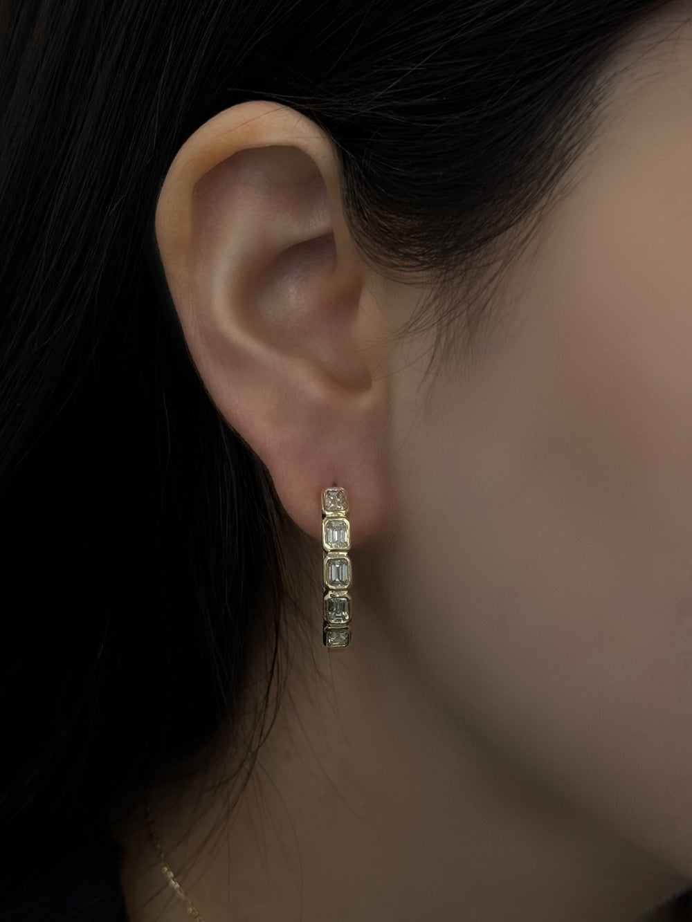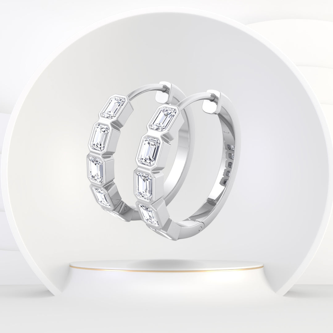 - Bezel Set Natural Diamond Hoops With Emerald Shape