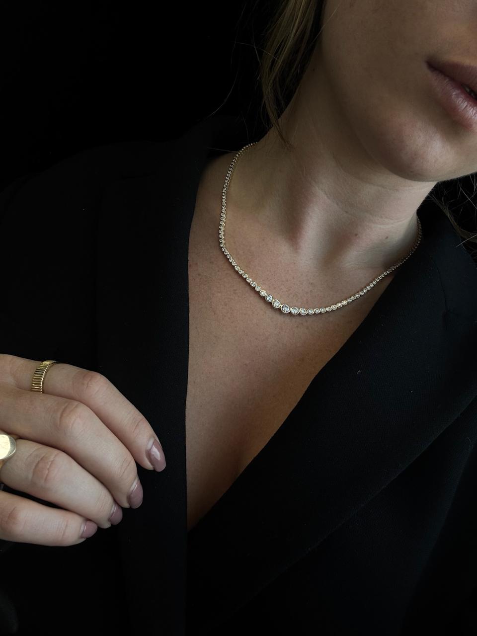 - Bezel Set Graduated Natural Diamond Tennis Necklace