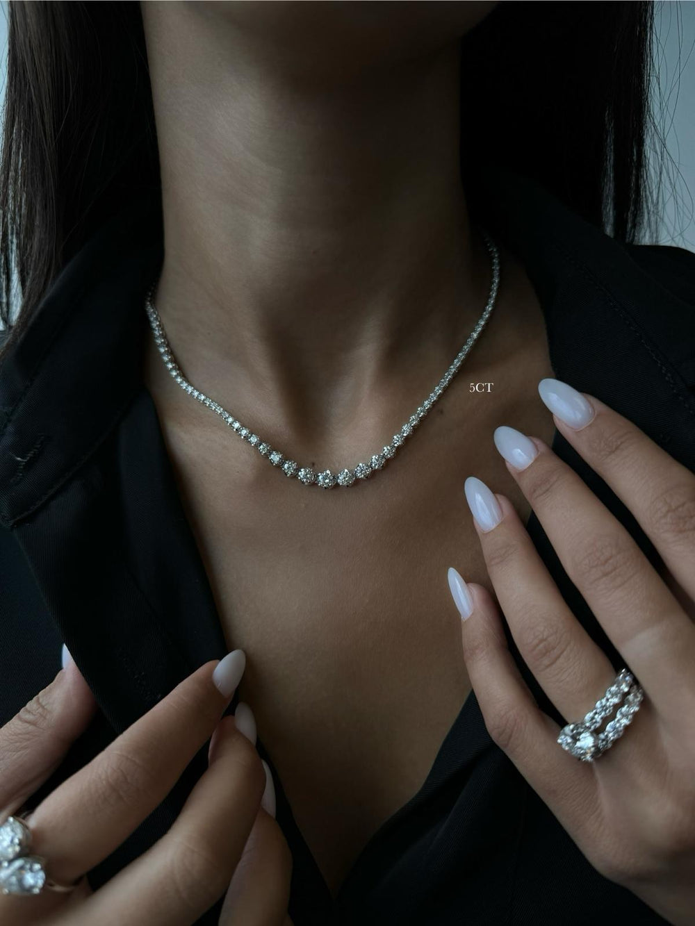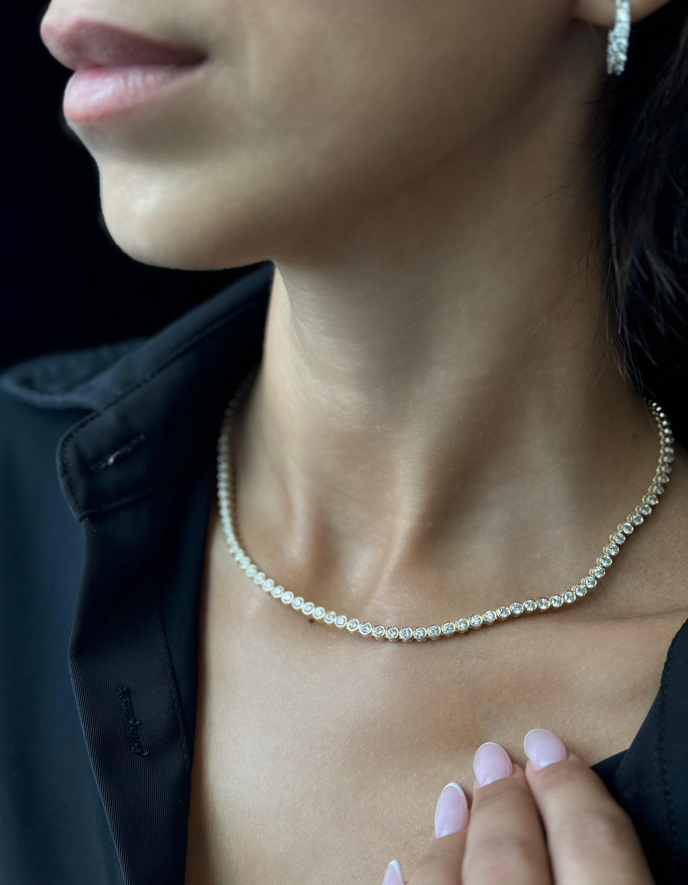 - Tennis Necklaces: Choose from classic prong settings for a touch of traditional elegance, or opt for modern bezel settings that offer a sleek, contemporary twist. Our tennis necklaces are designed to shimmer with every movement, providing a dazzling statement of sophistication.