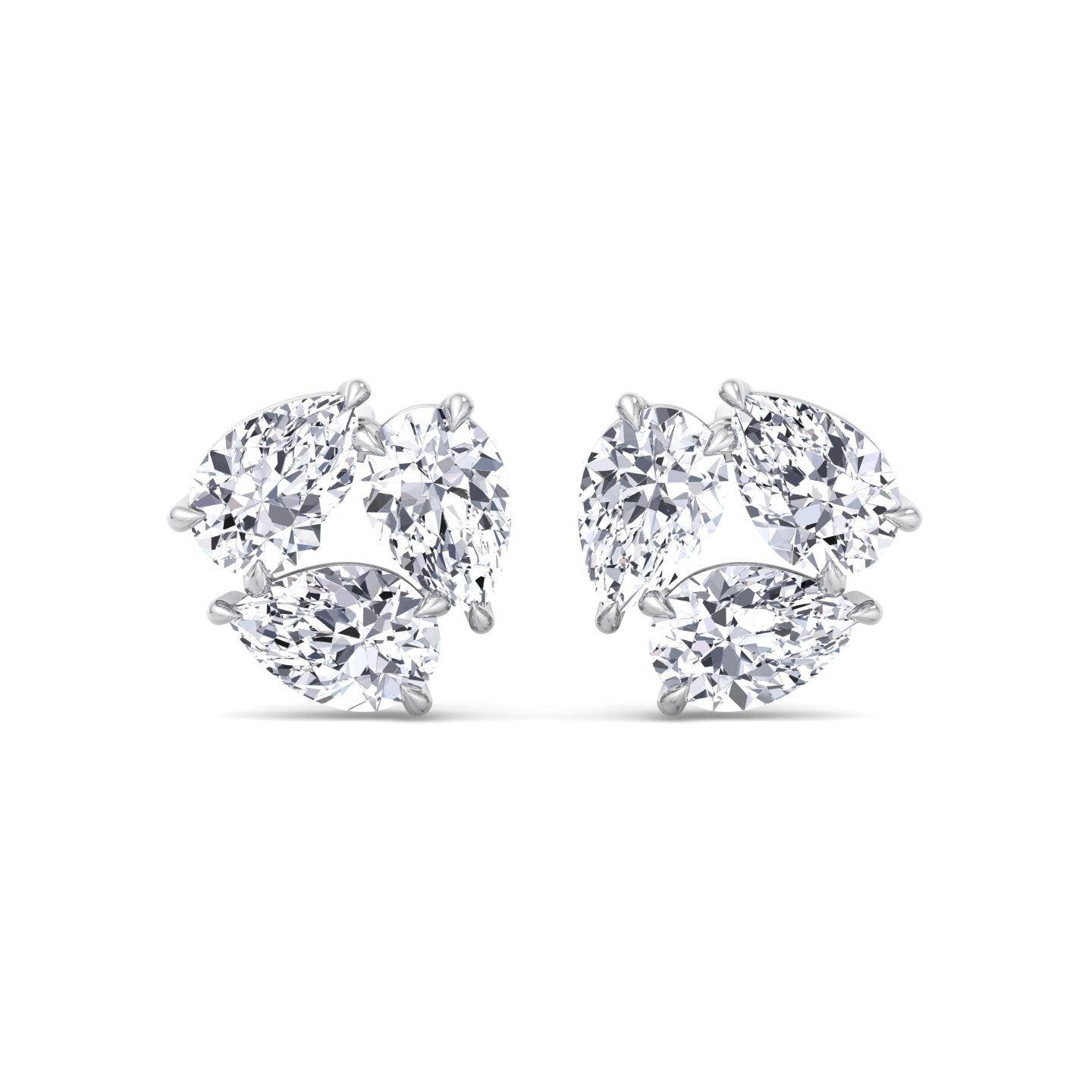 These 3-Piece Pear Shape Natural Diamond Studs showcase a unique clustered layout that creates a fuller, multidimensional sparkle. Each pear-shaped diamond is set in a refined prong setting, giving the studs a polished, modern look perfect for any occasion.