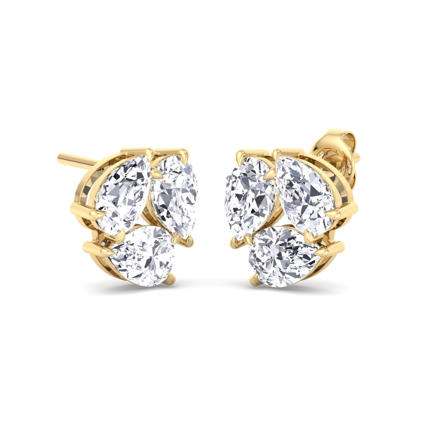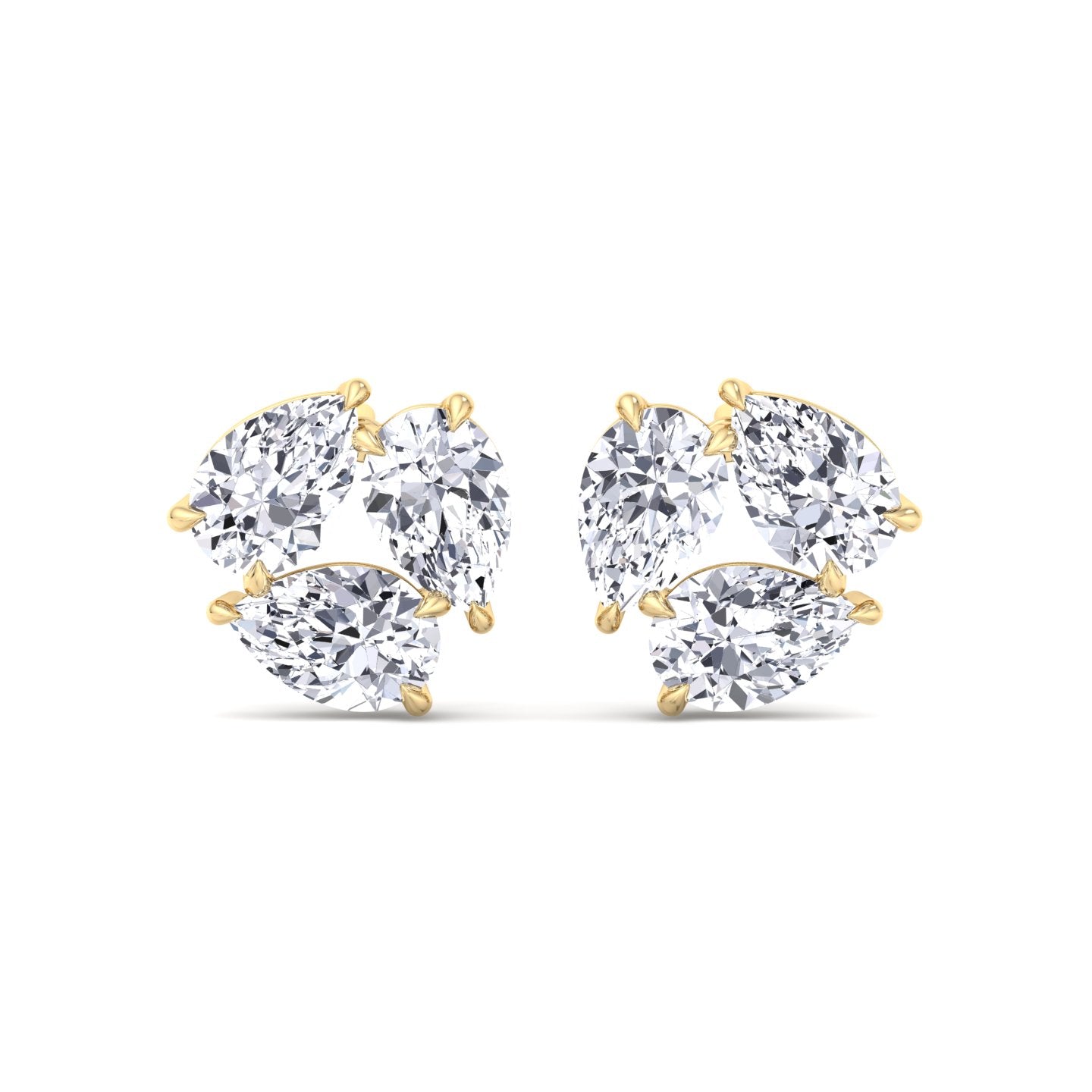 These 3-Piece Pear Shape Natural Diamond Studs feature a unique clustered design, artfully arranged to create a full, dimensional sparkle from every angle. Each pear-shaped diamond is secured in a refined prong setting, giving the studs a polished, elegant finish.