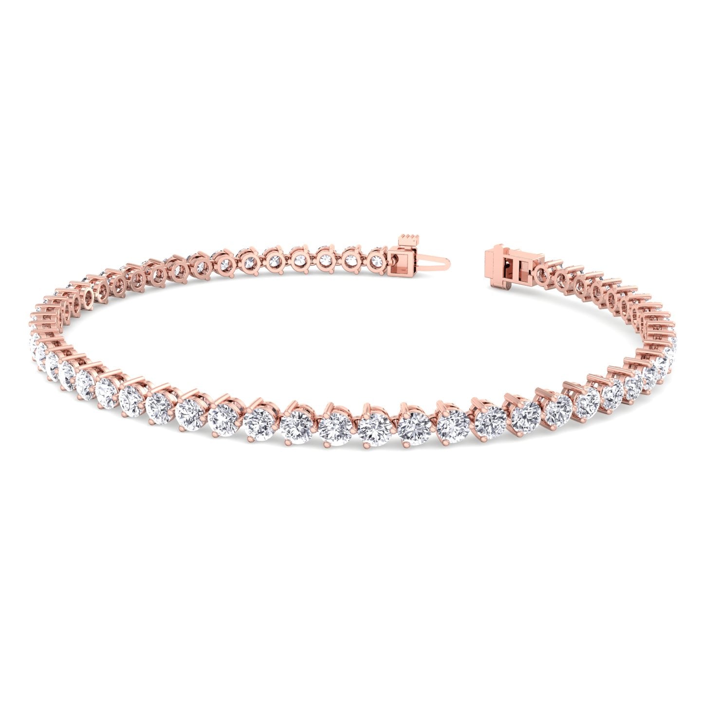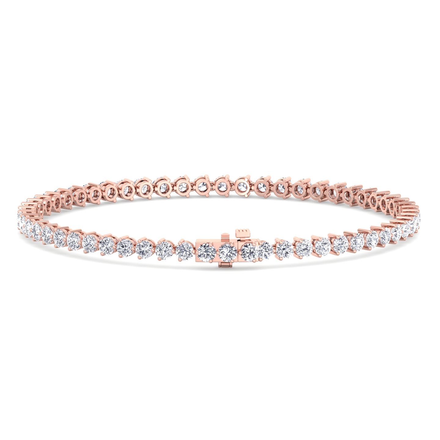 3-Prong Natural Diamond Tennis Bracelet-Martini Rose Gold, Front