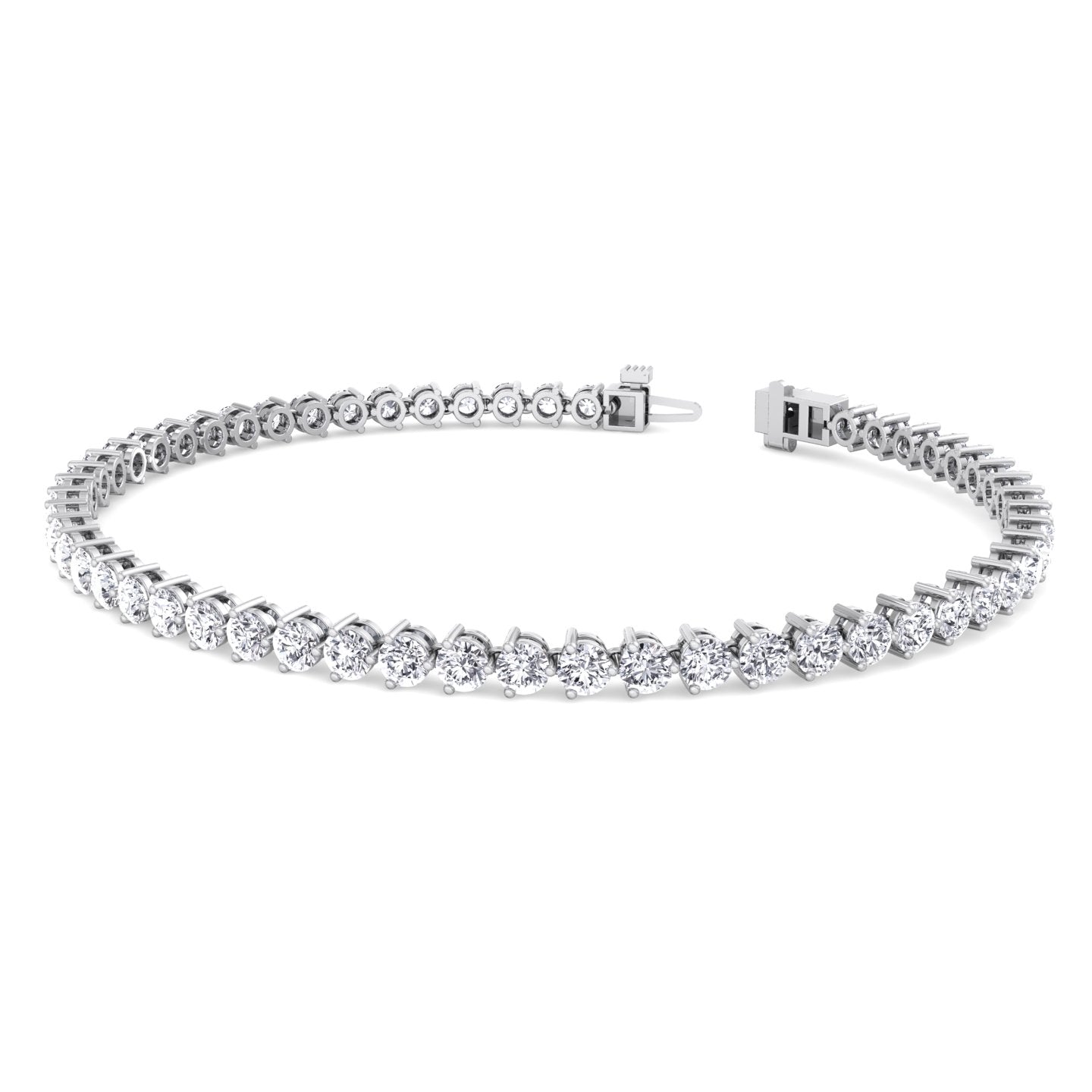 3-Prong Natural Diamond Tennis Bracelet-Martini White Gold, Clasp