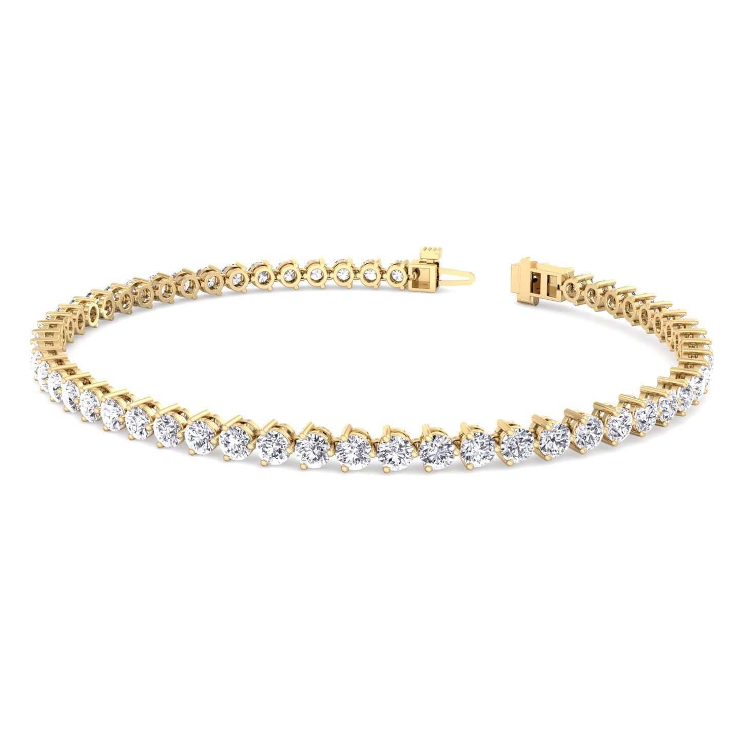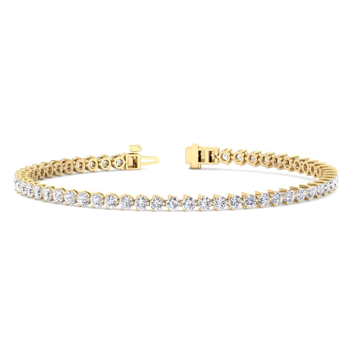 3-Prong Natural Diamond Tennis Bracelet-Martini Yellow Gold, Clasp