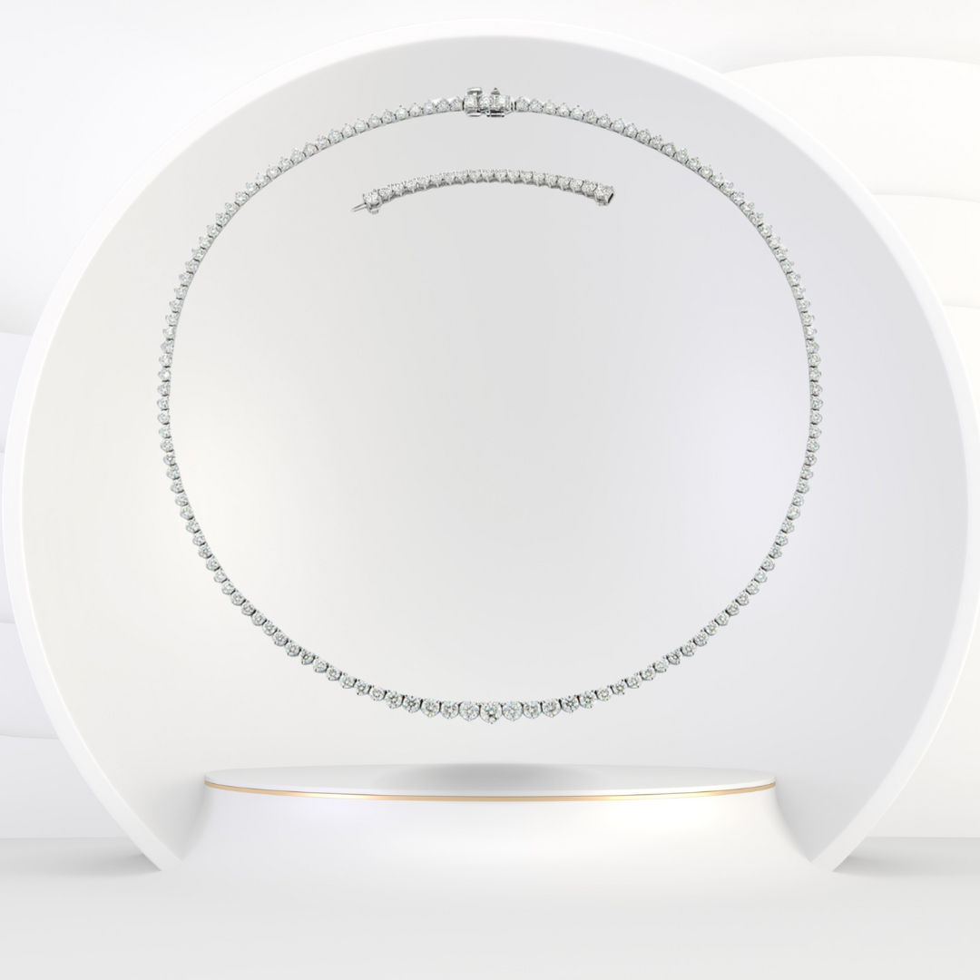 This 3-Prong Riviera Graduated Natural Diamond Tennis Necklace features round-cut diamonds set in a classic graduated design for a smooth, elegant flow across the neckline. The secure 3-prong setting enhances brilliance while keeping the look light, refined, and timeless.