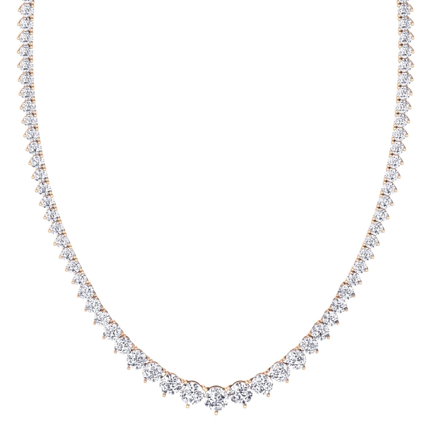 3-Prong Riviera Graduated Natural Diamond Tennis Necklace with Extender Rose Gold