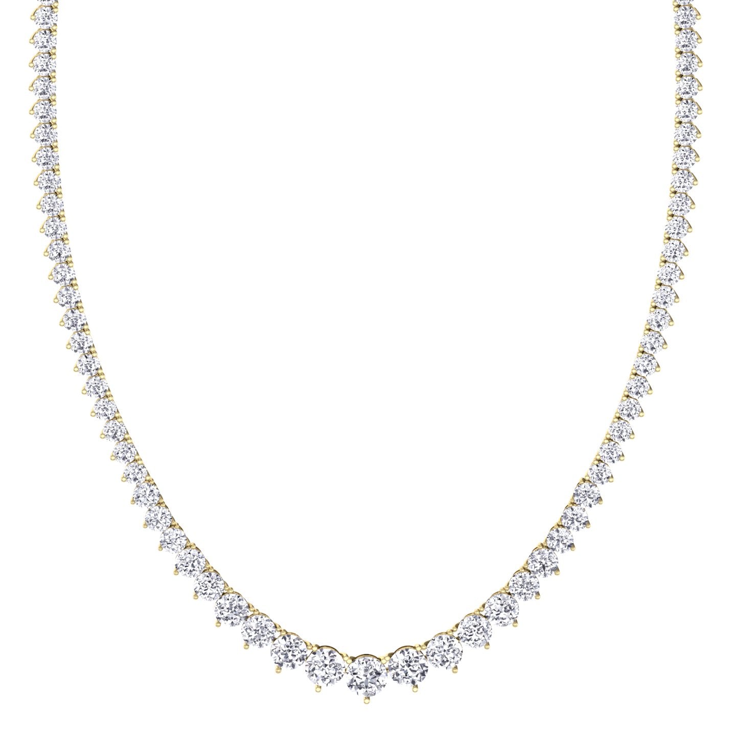 3-Prong Riviera Graduated Natural Diamond Tennis Necklace with Extender Yellow Gold