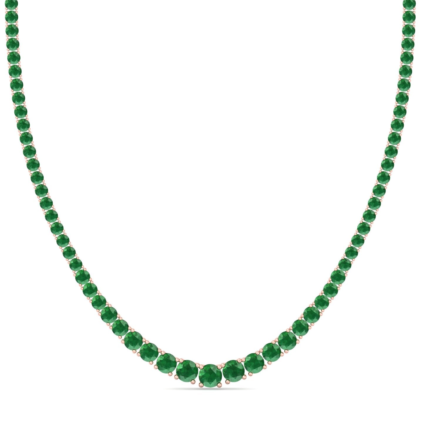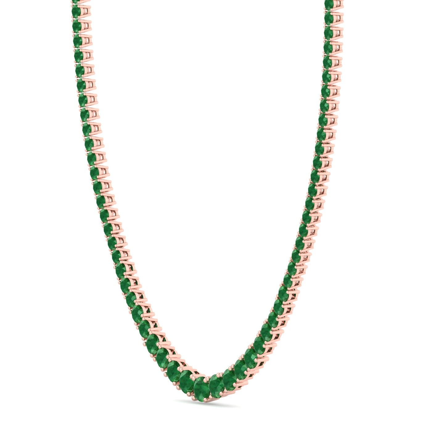 4 Prong Graduated Natural Green Emerald Tennis Necklace Rose Gold 14K 18K