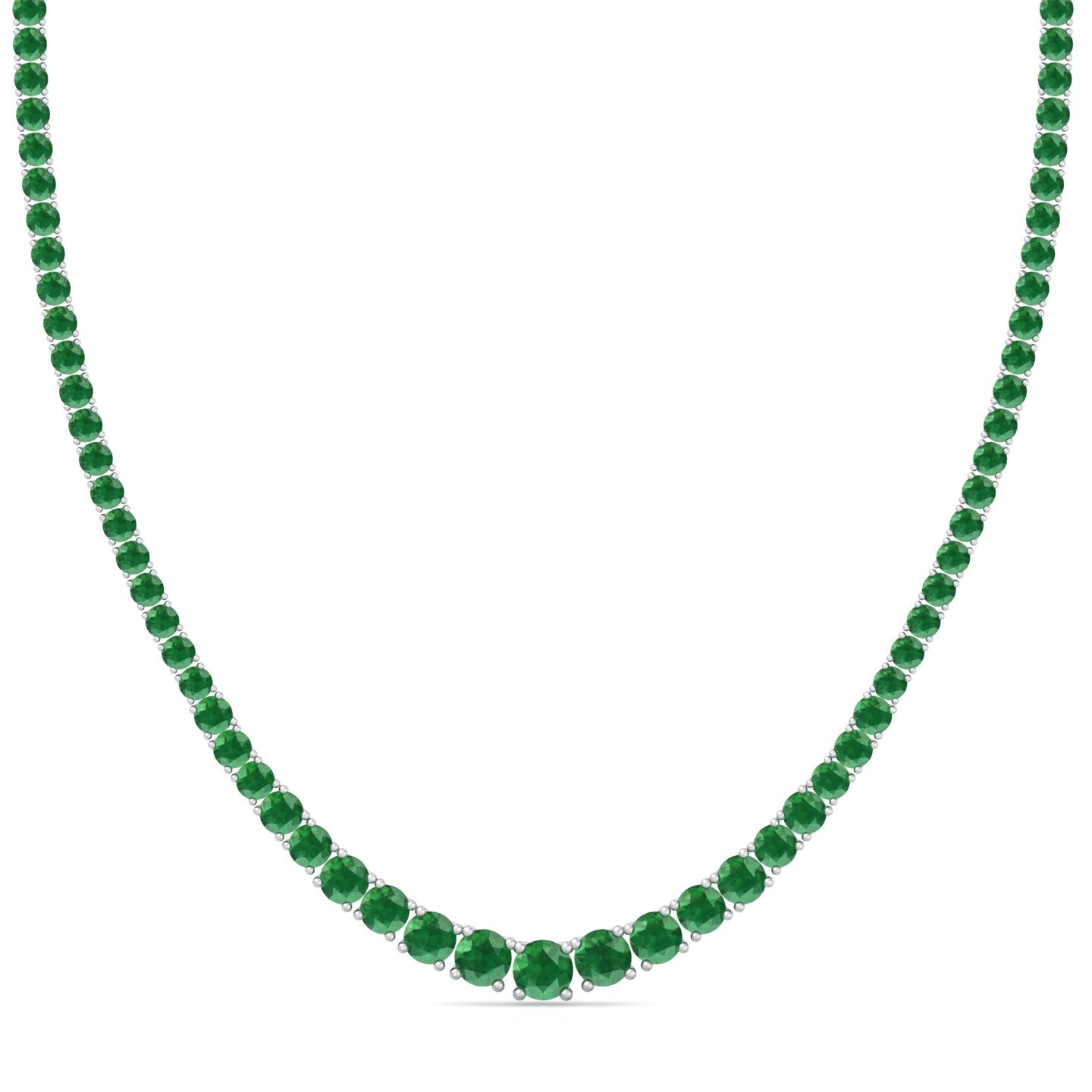 4 Prong Graduated Natural Green Emerald Tennis Necklace White Gold 14K 18K