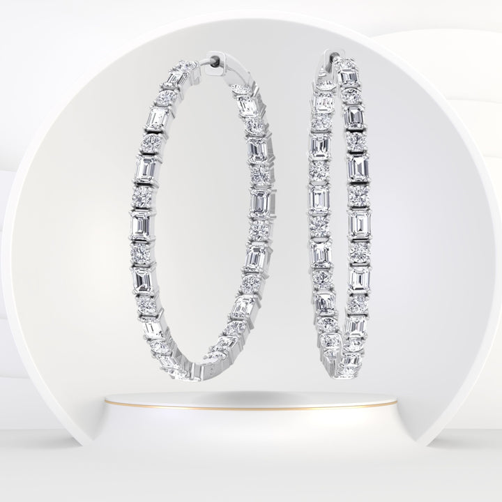 Altaire - Emerald and Round Cut Eternity Hoops - Gem Jewelers Co