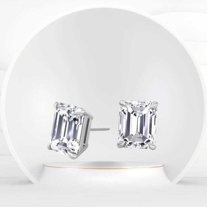 Exquisite Emerald Cut Stud Earrings. Emerald Shape Diamonds are perfect if you are looking for something a little more royal. These studs will do just that add the perfect touch of royalty to your diamond collection.