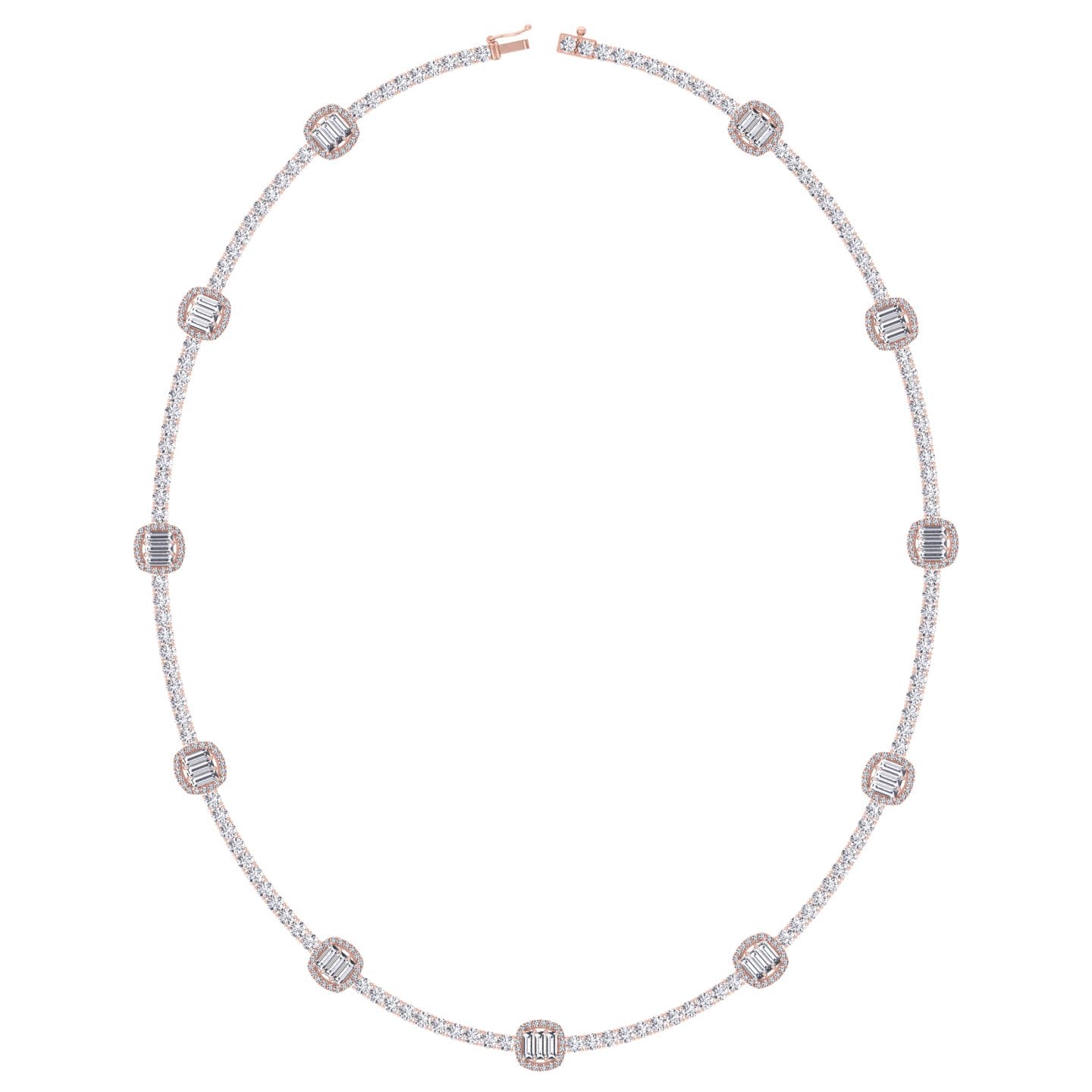Emerald Shape Halo Station Natural Diamond Tennis Necklace in 14K Solid Gold Rose Gold 14K