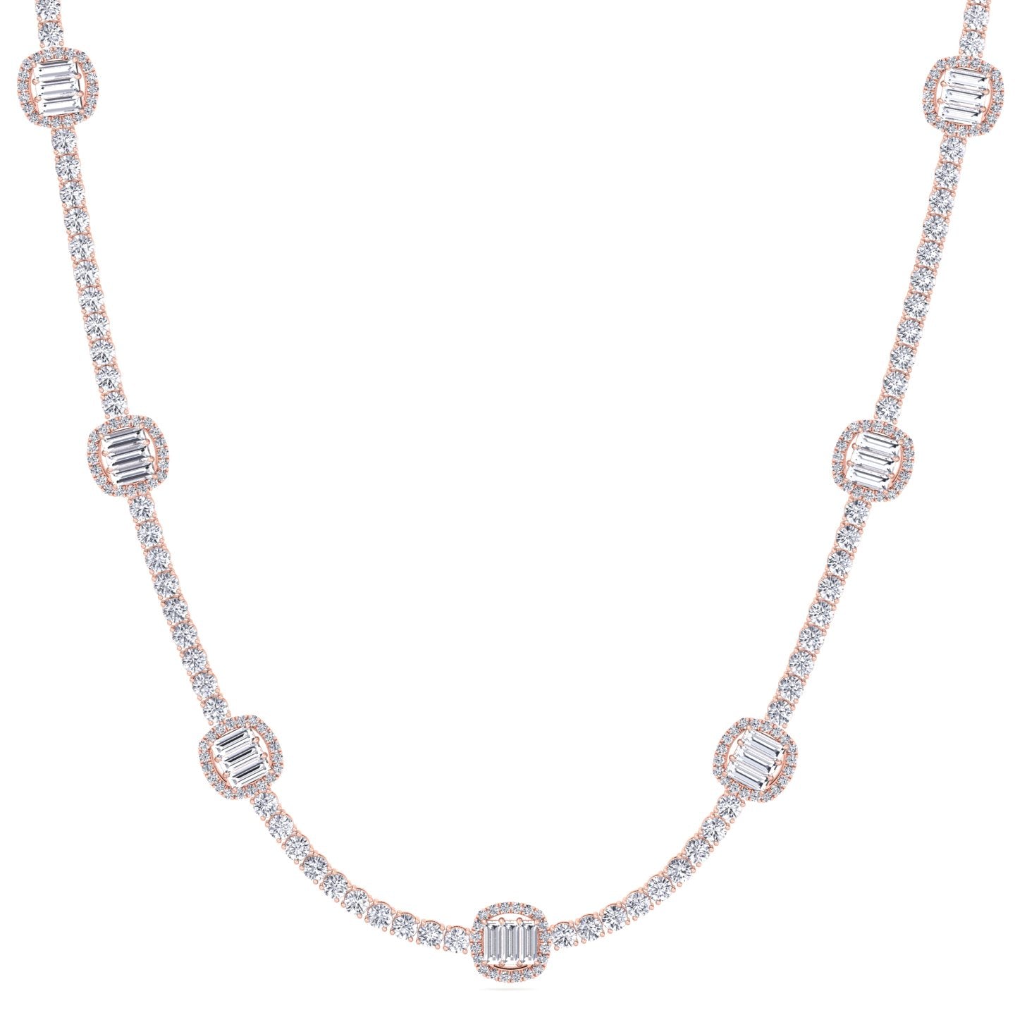 Emerald Shape Halo Station Natural Diamond Tennis Necklace in 14K Solid Gold Rose Gold
