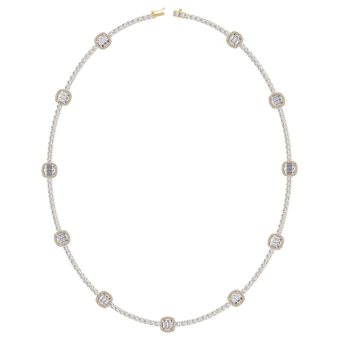 (14CT T.W) Emerald Shape Halo Station Natural Diamond Tennis Necklace in 14K Solid Gold