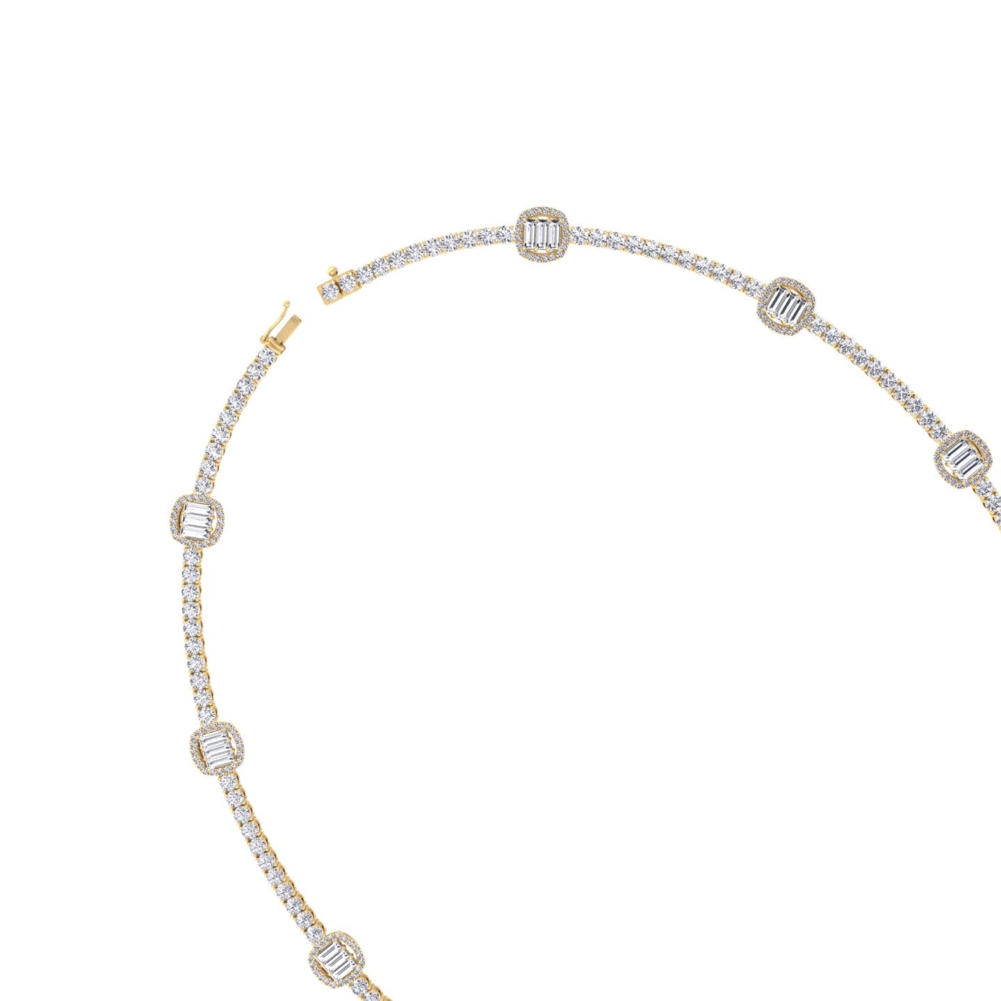 Emerald Shape Halo Station Natural Diamond Tennis Necklace in 14K Solid Gold Yellow Gold 14K 18K