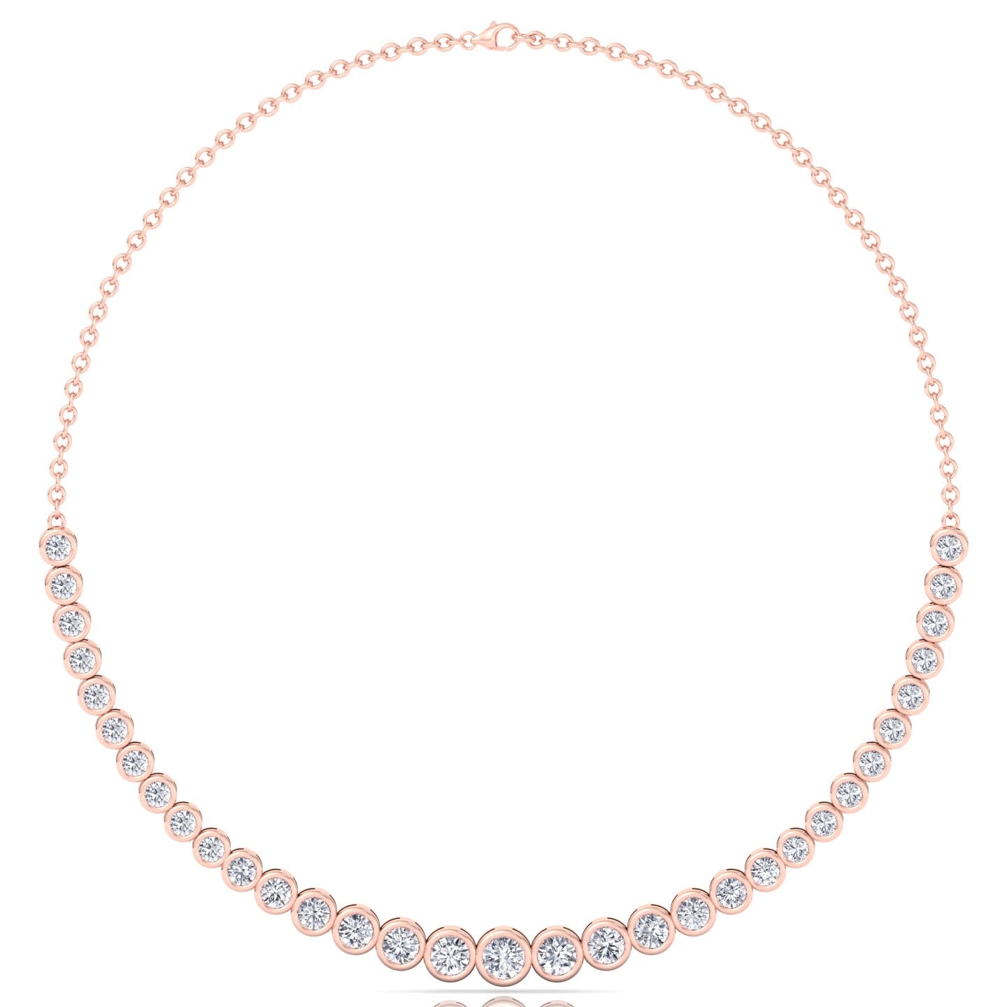 Halfway Graduated Bezel Set Natural Diamond Tennis Necklace Rose Gold