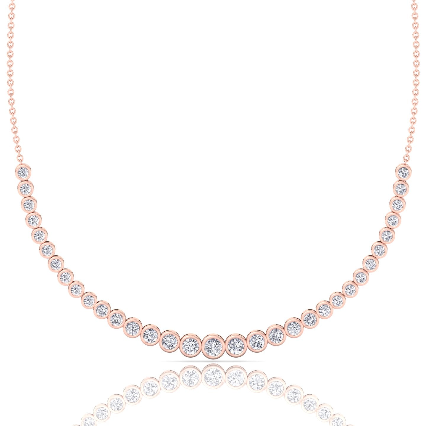 Halfway Graduated Bezel Set Natural Diamond Tennis Necklace Rose