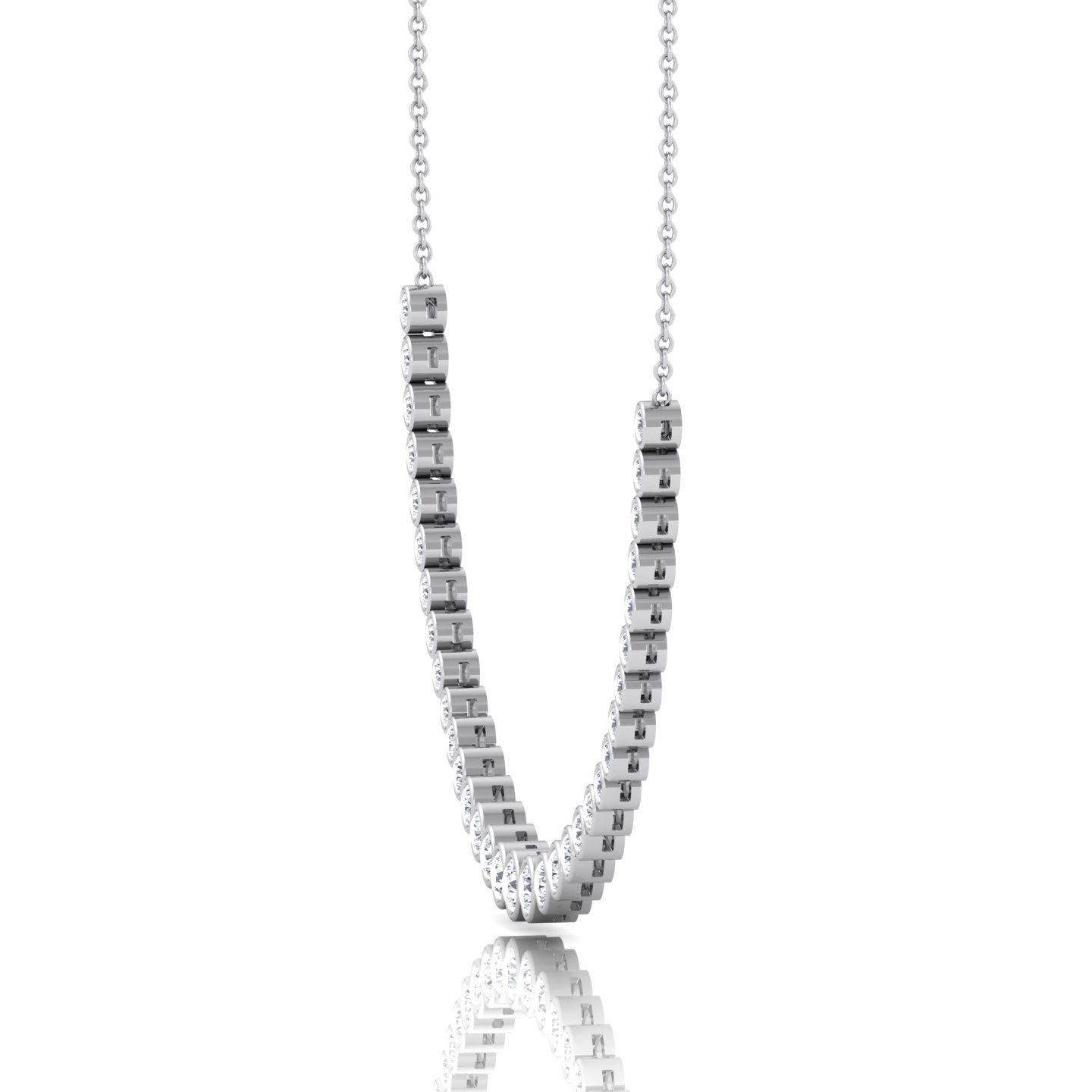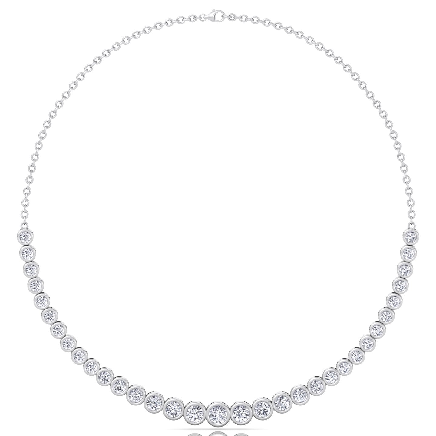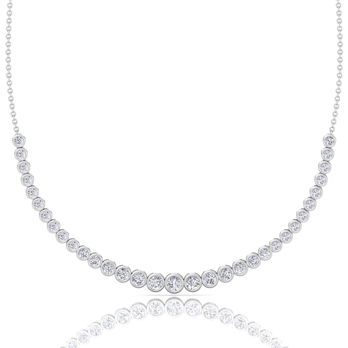 Halfway Graduated Bezel Set Natural Diamond Tennis Necklace White