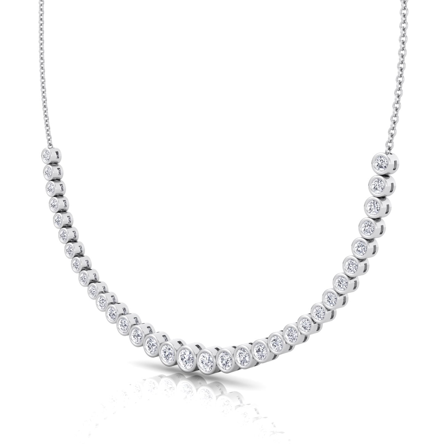 Halfway Graduated Bezel Set Natural Diamond Tennis Necklace White Gold 14K 18K