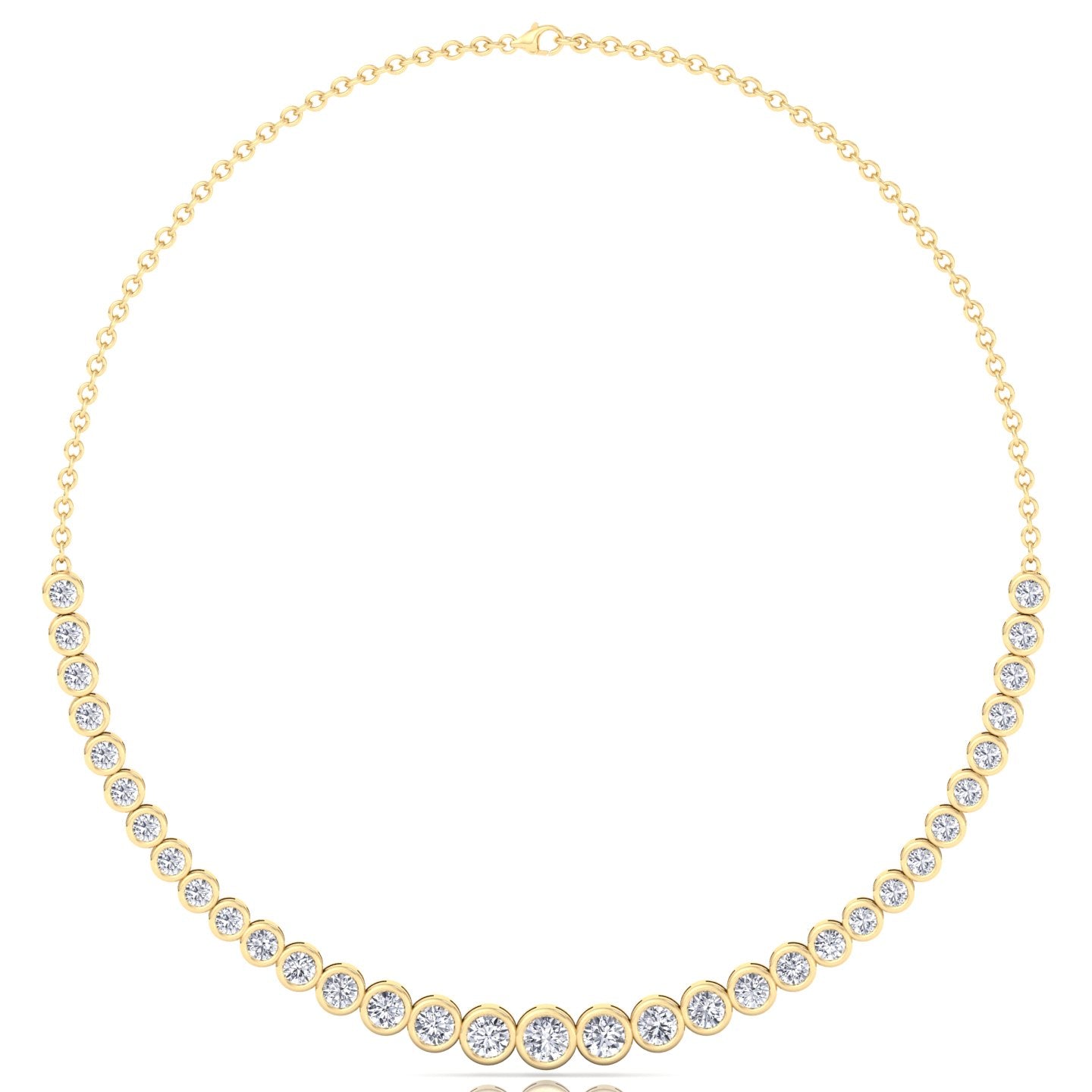 Halfway Graduated Bezel Set Natural Diamond Tennis Necklace Yellow Gold 18K