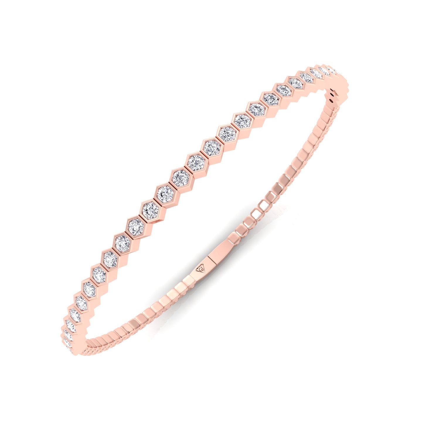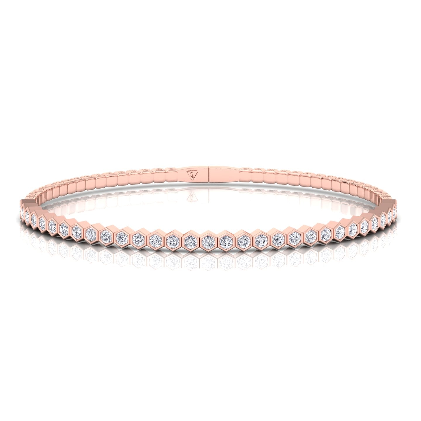 Hexagonal Bezel Set Natural Diamond Flexible Bangle Rose Gold
