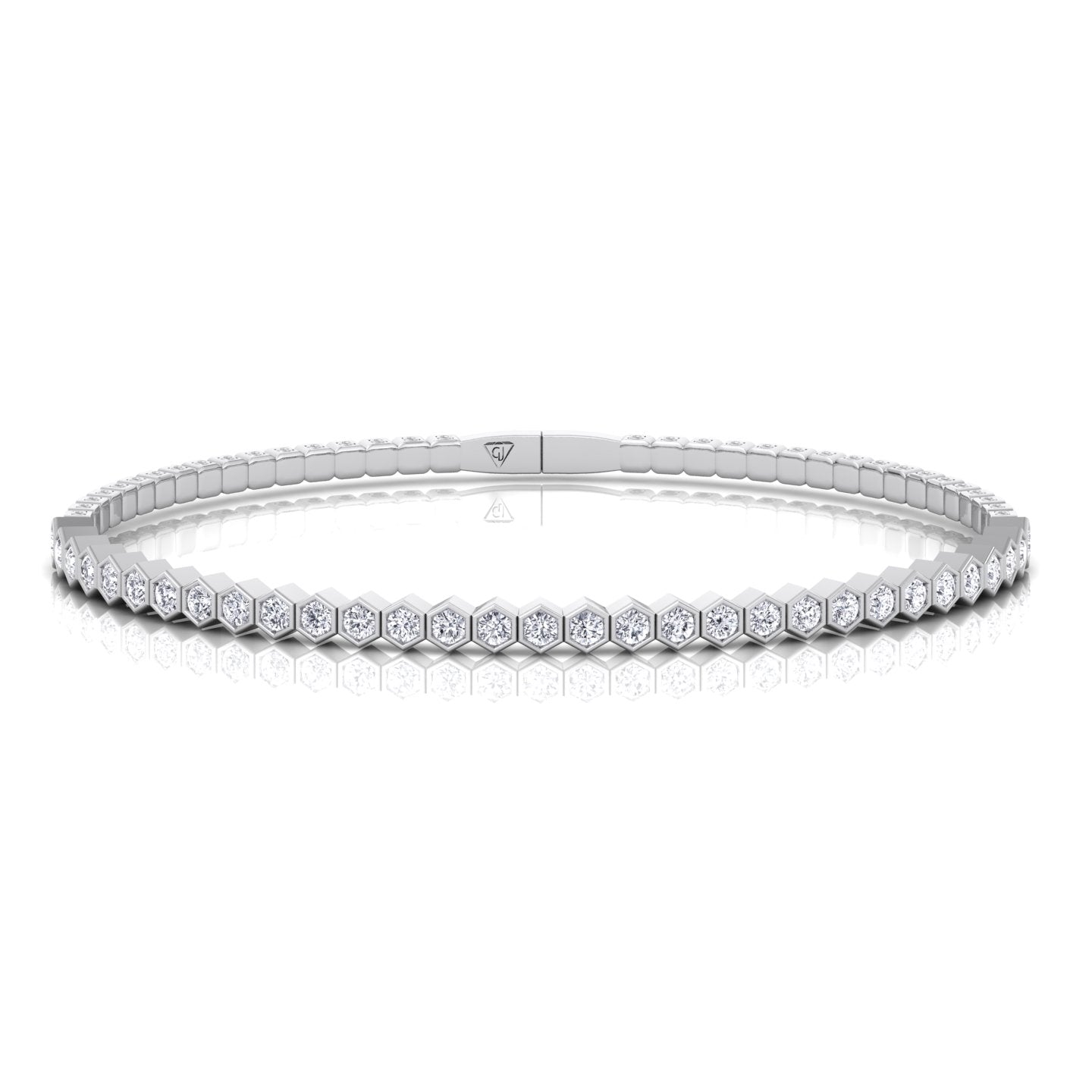 Hexagonal Bezel Set Natural Diamond Flexible Bangle White Gold 14K 18K