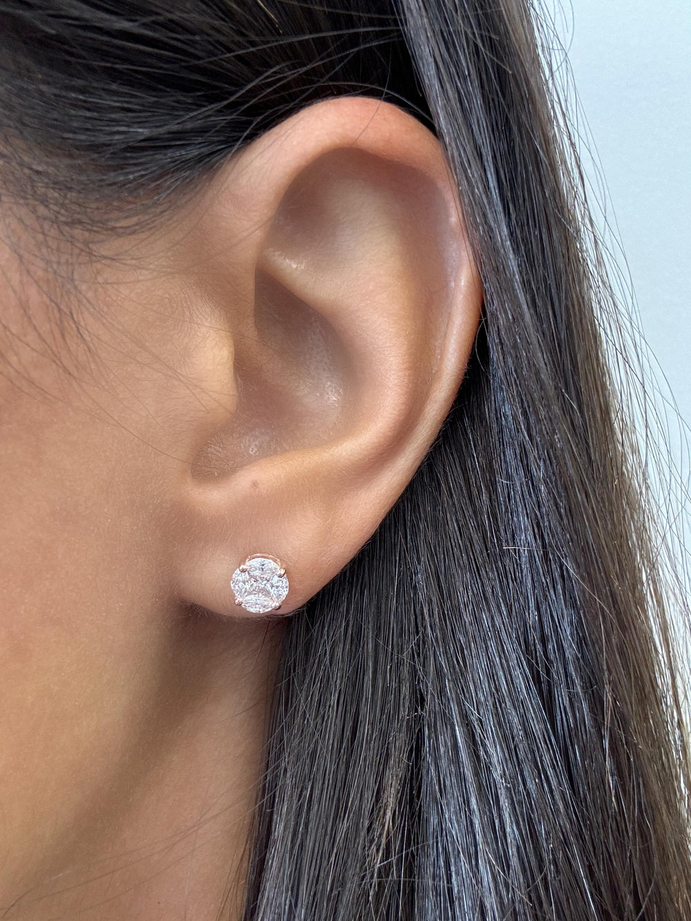 Marquise and Princess Shape Natural Diamond Clustered Stud Earrings