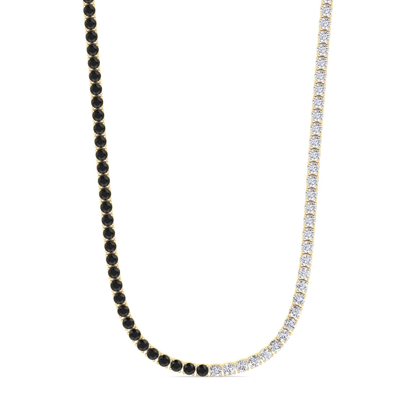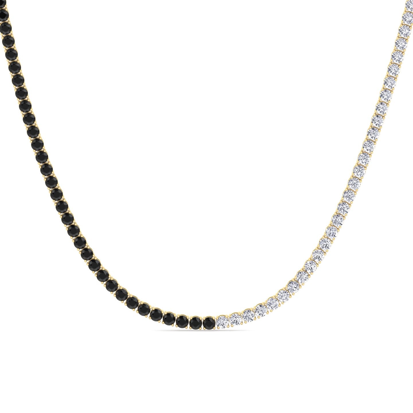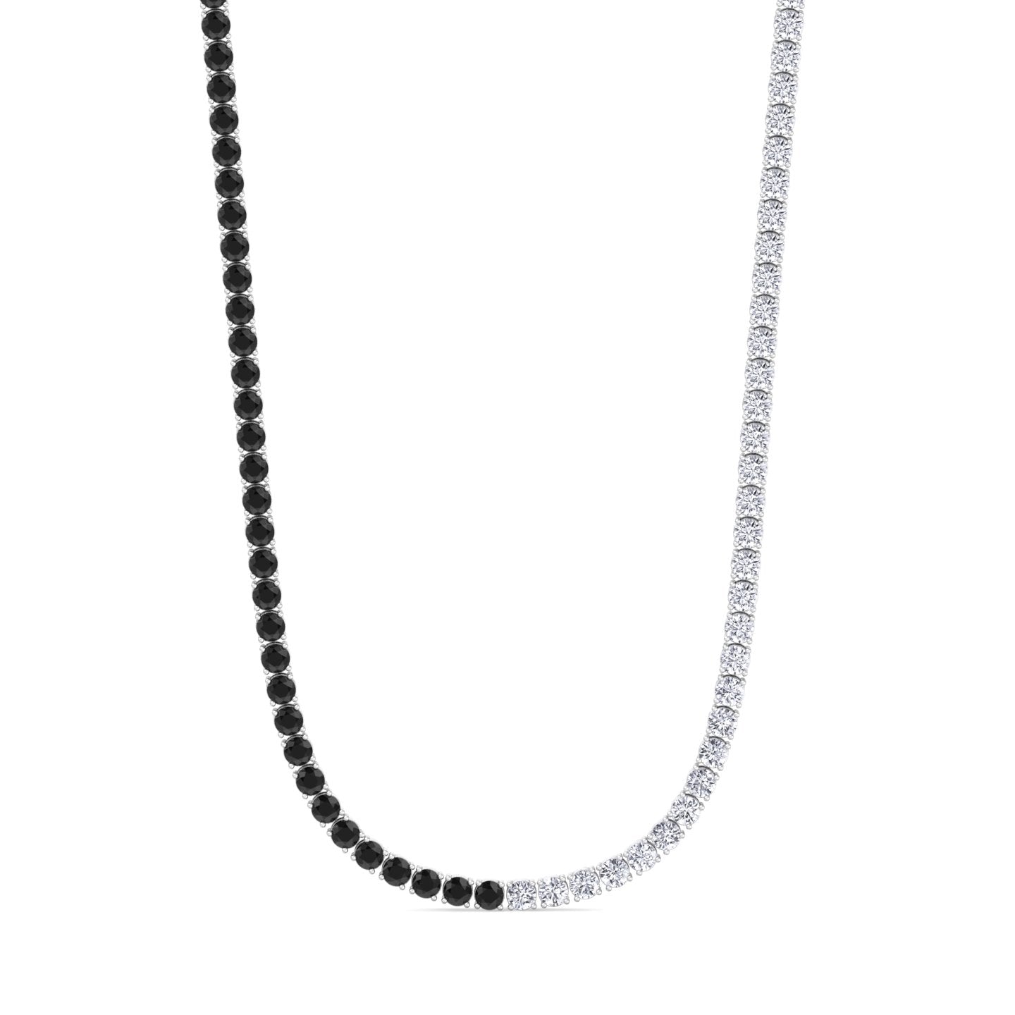 Crafted for those who want a modern twist on a classic tennis style, this design delivers symmetry, edge, and elegance in one seamless piece. Its smooth transition from black to white makes it a standout statement necklace for everyday wear or elevated occasions.