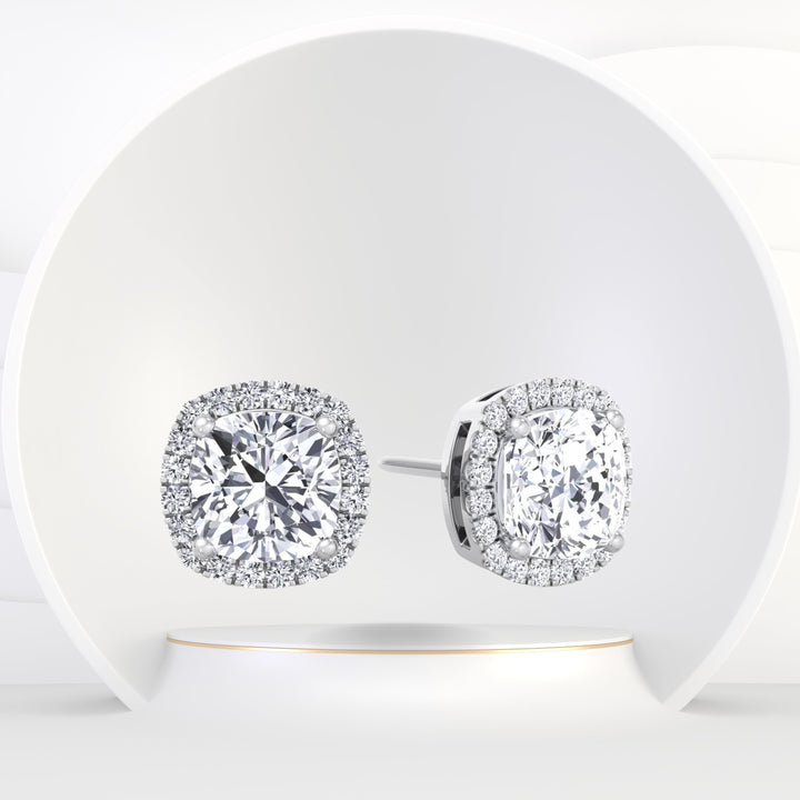 Norwich - Cushion Cut Diamond Halo Studs - Gem Jewelers Co
