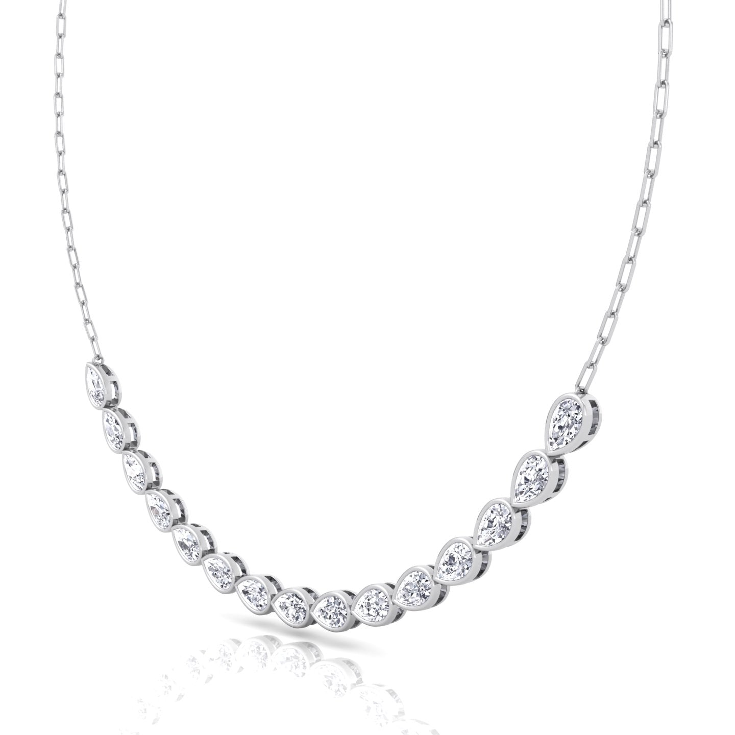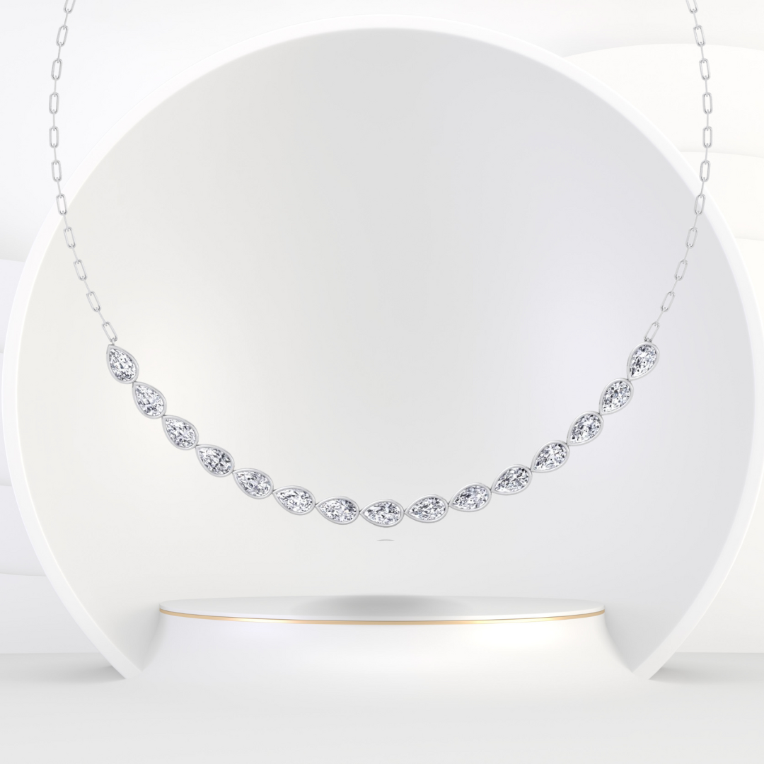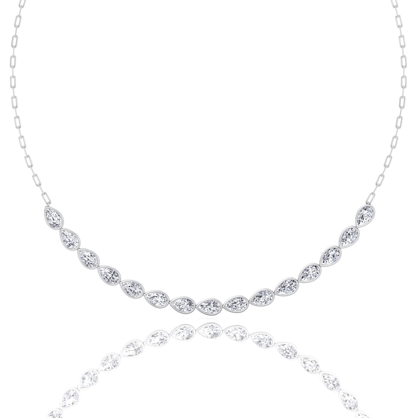 Paper Clip and Pear Shape Bezel Set Diamond Tennis Necklace White Gold 14K 18K