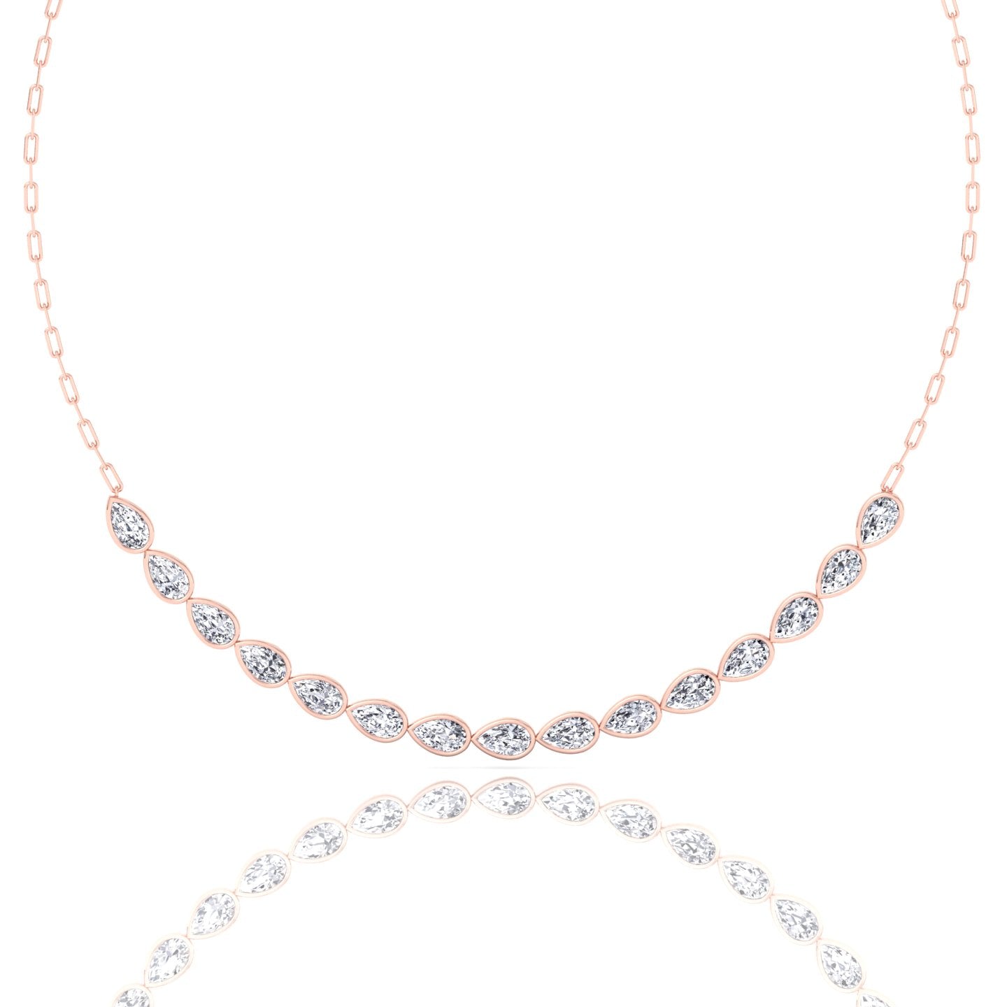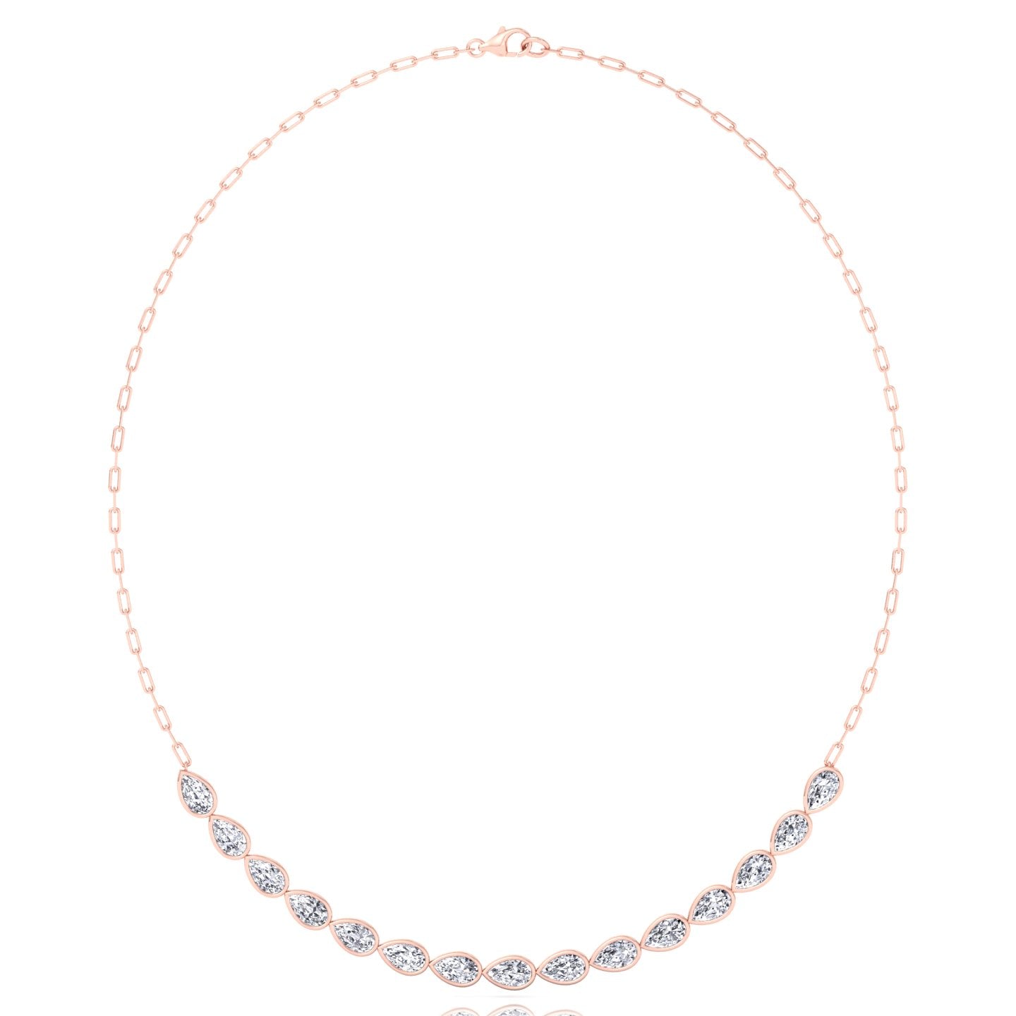 Paper Clip and Pear Shape Bezel Set Diamond Tennis Necklace Rose Gold 14K 18K