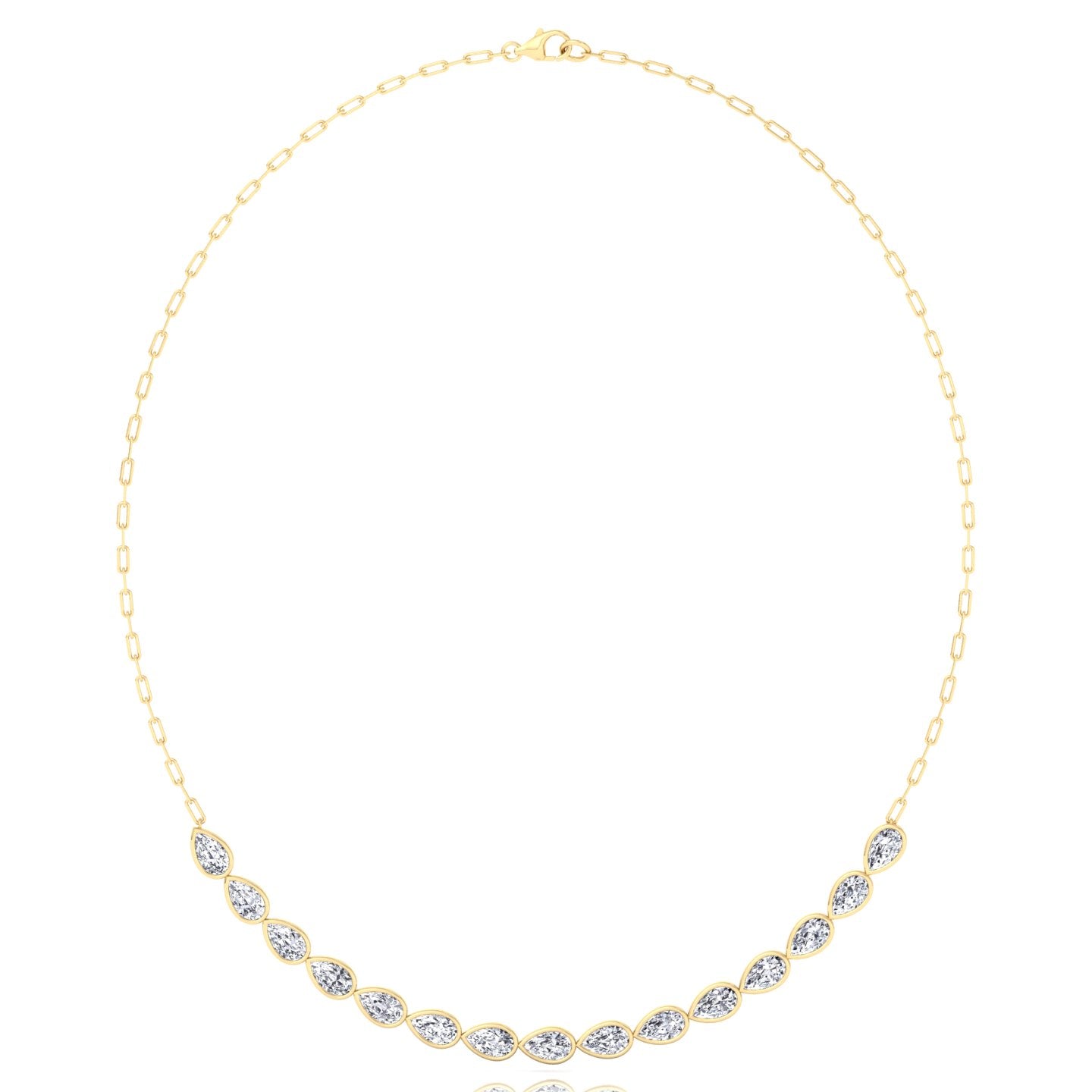 Paper Clip and Pear Shape Bezel Set Diamond Tennis Necklace Yellow Gold 14K 18K