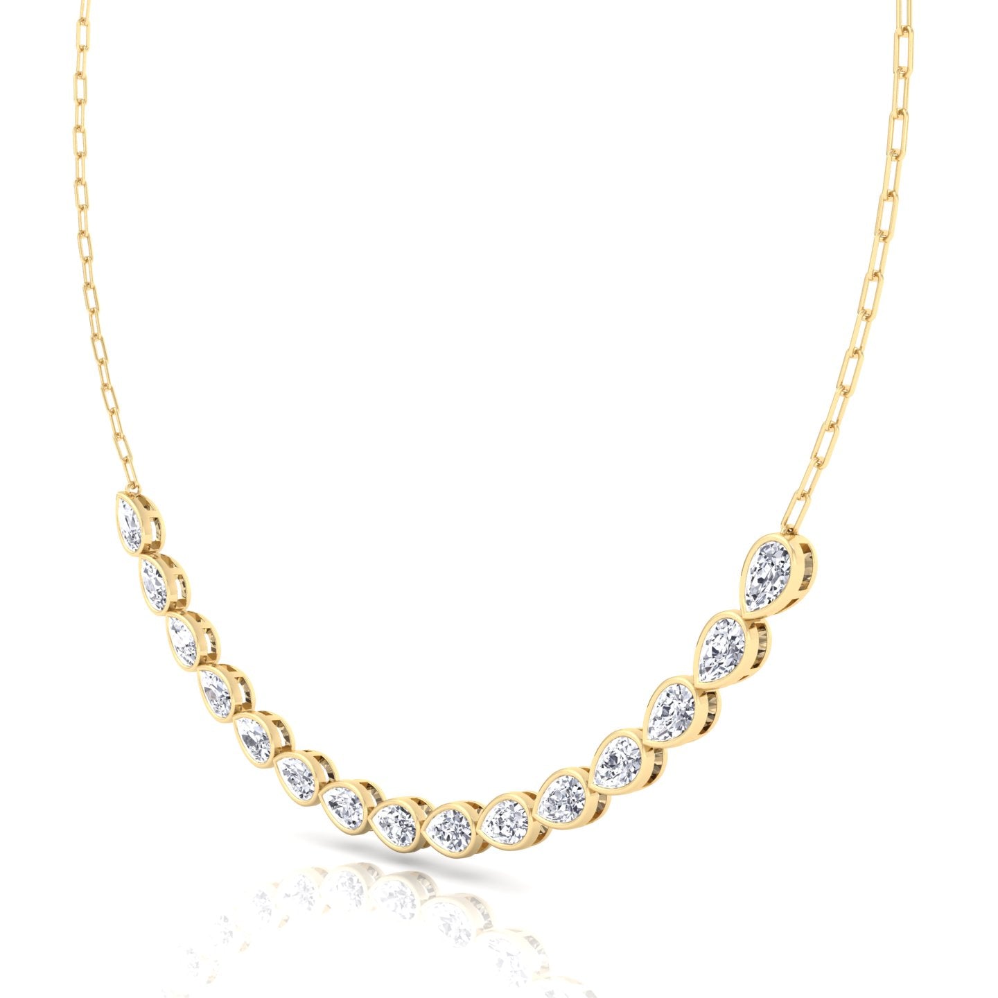 Paper Clip and Pear Shape Bezel Set Diamond Tennis Necklace Yellow