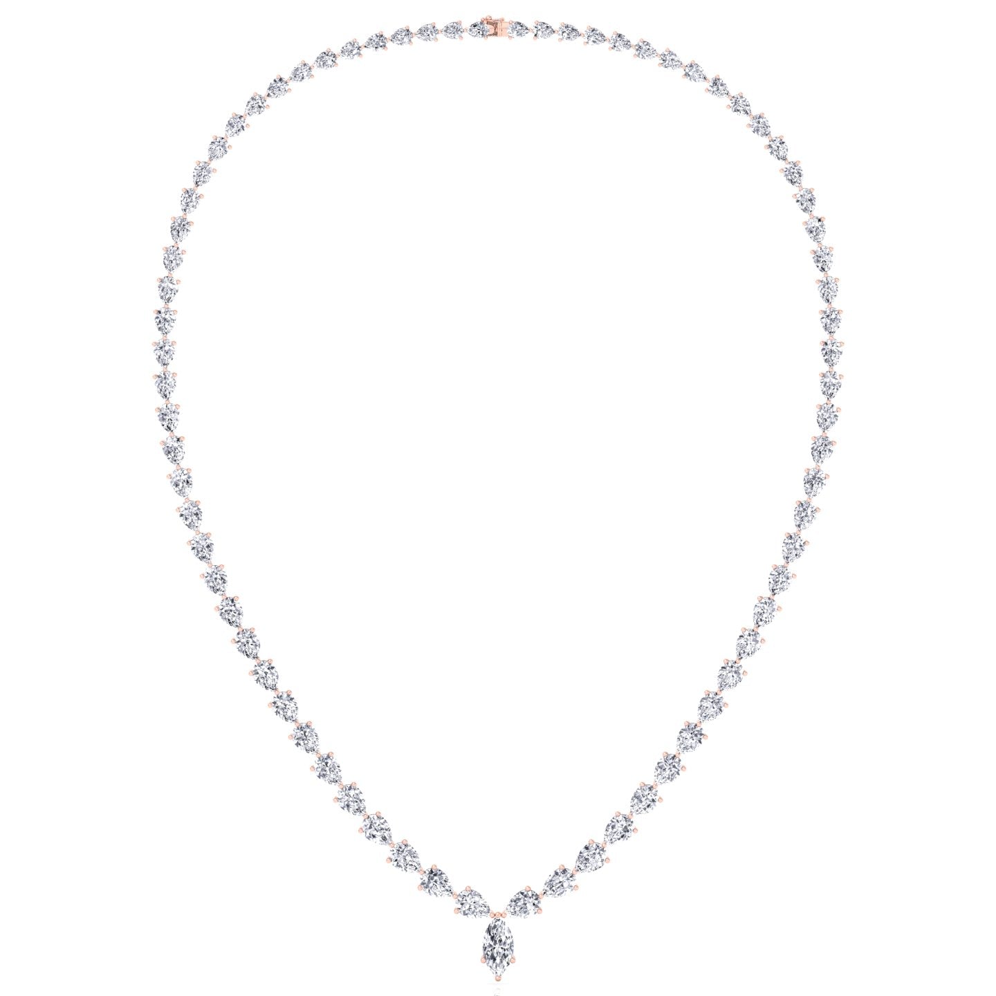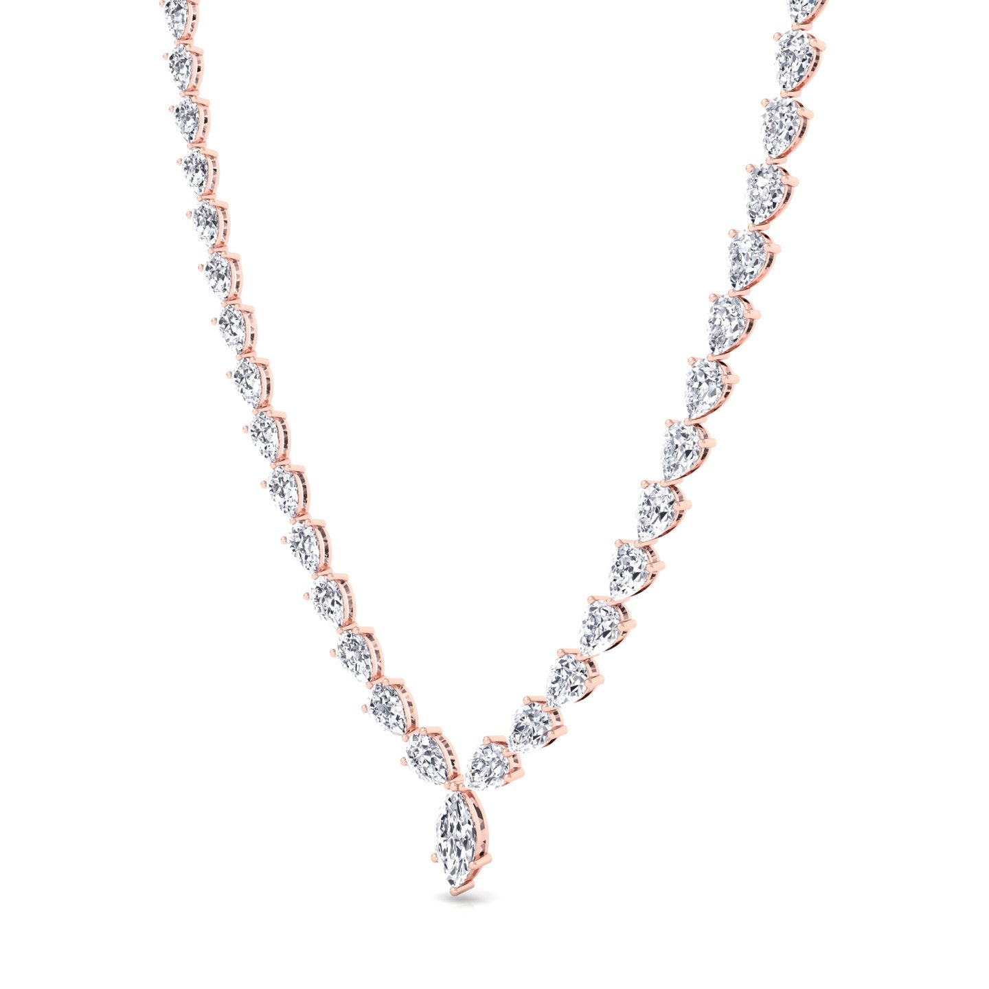 Pear Shape Natural Diamond Tennis Necklace Rose Gold 15CT