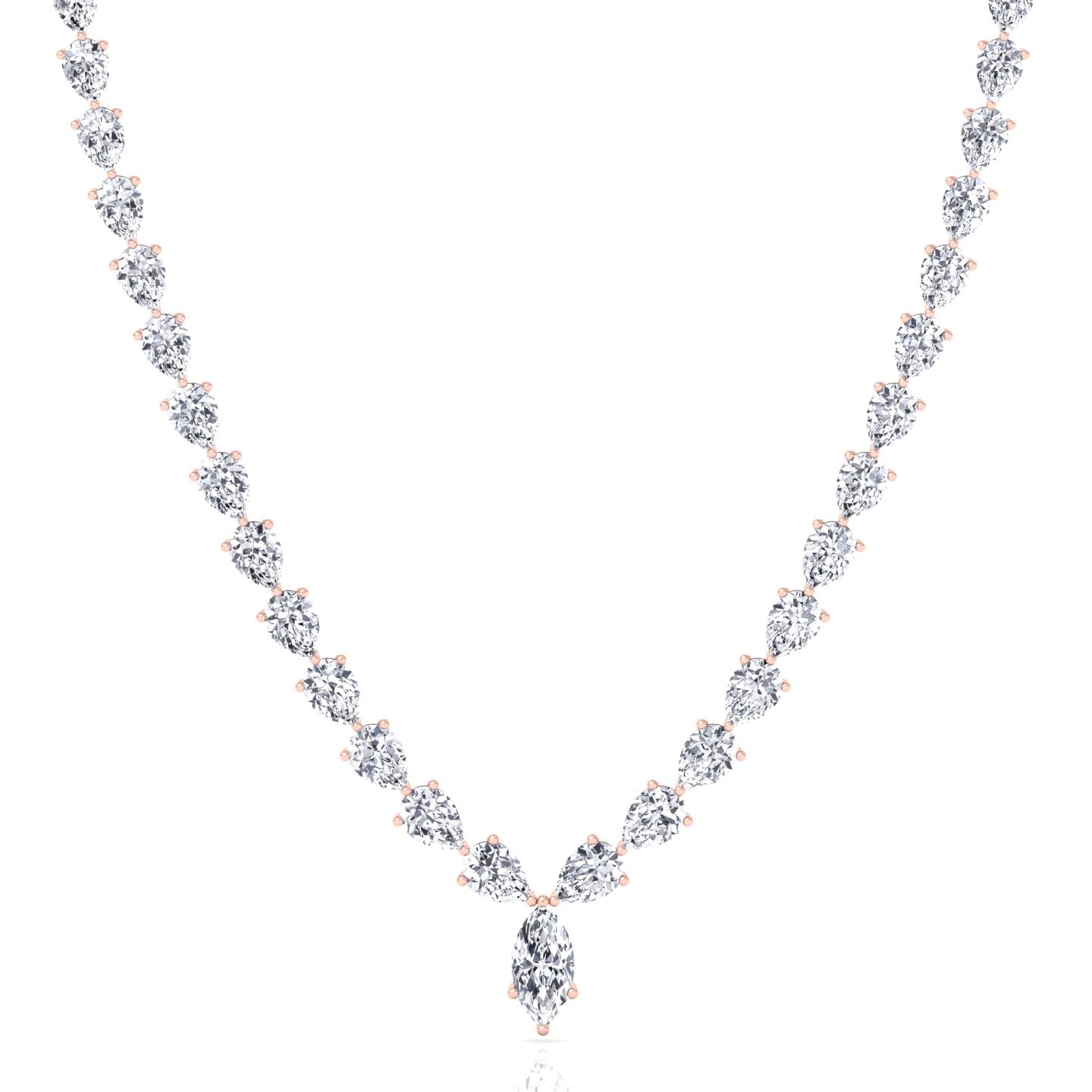 Pear Shape Natural Diamond Tennis Necklace Rose