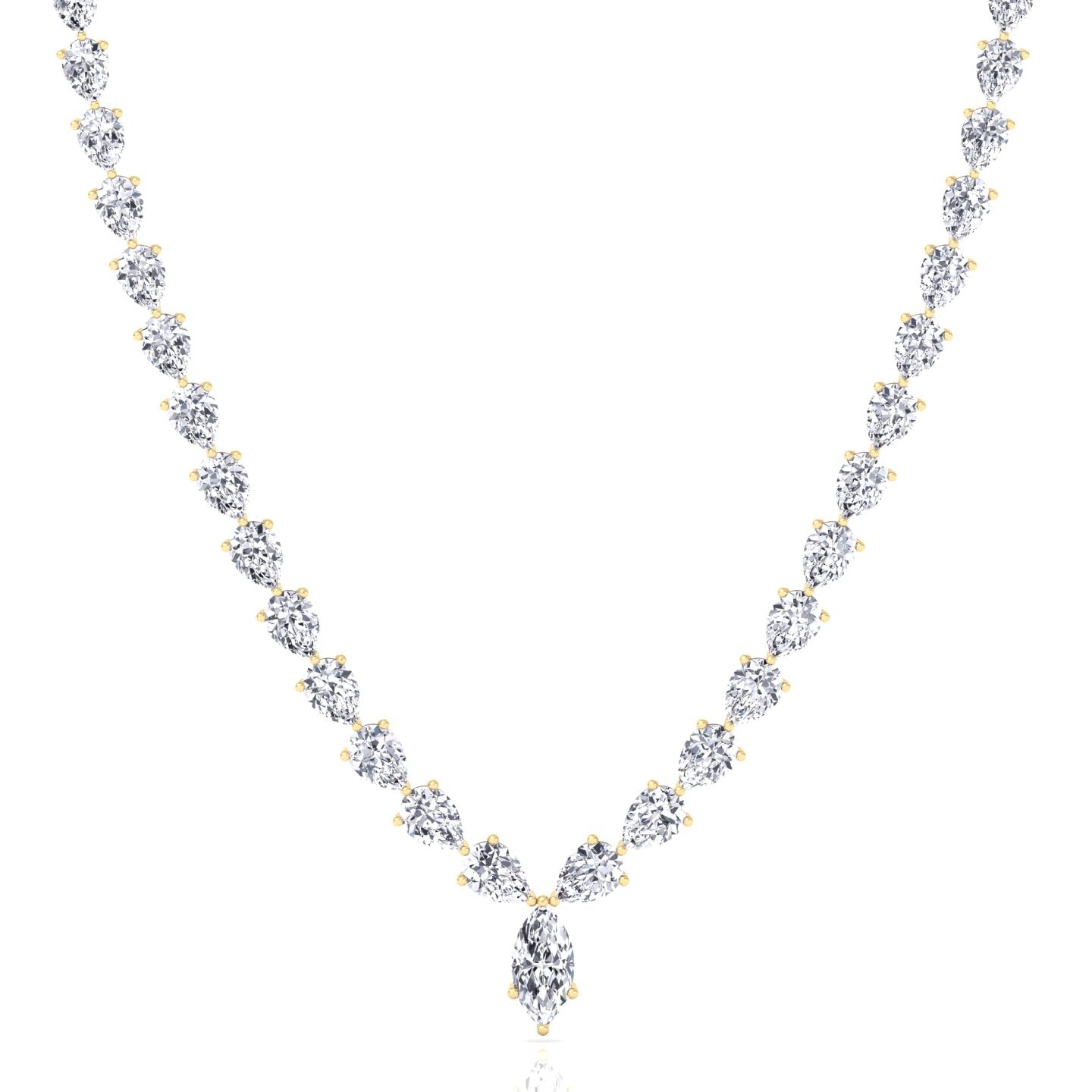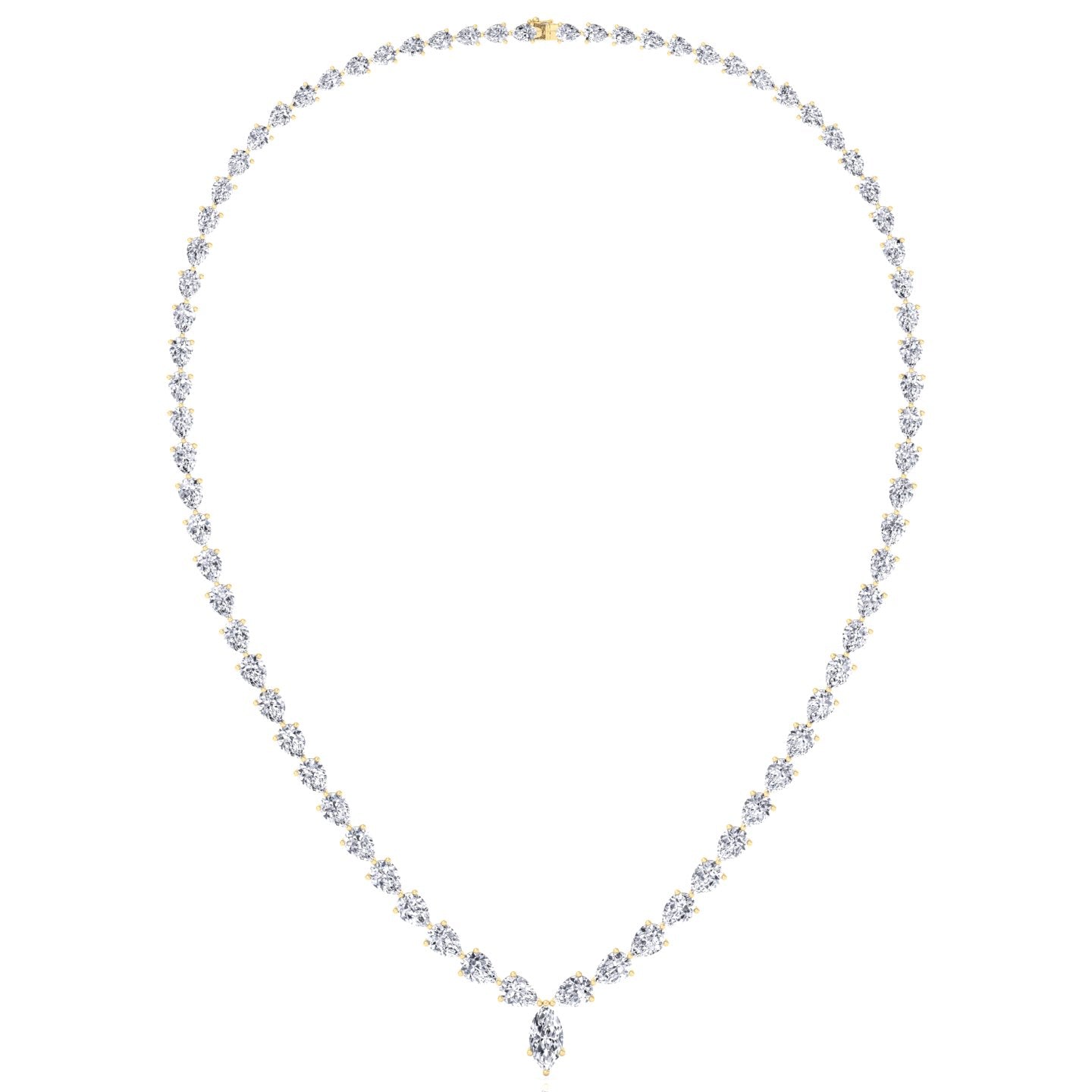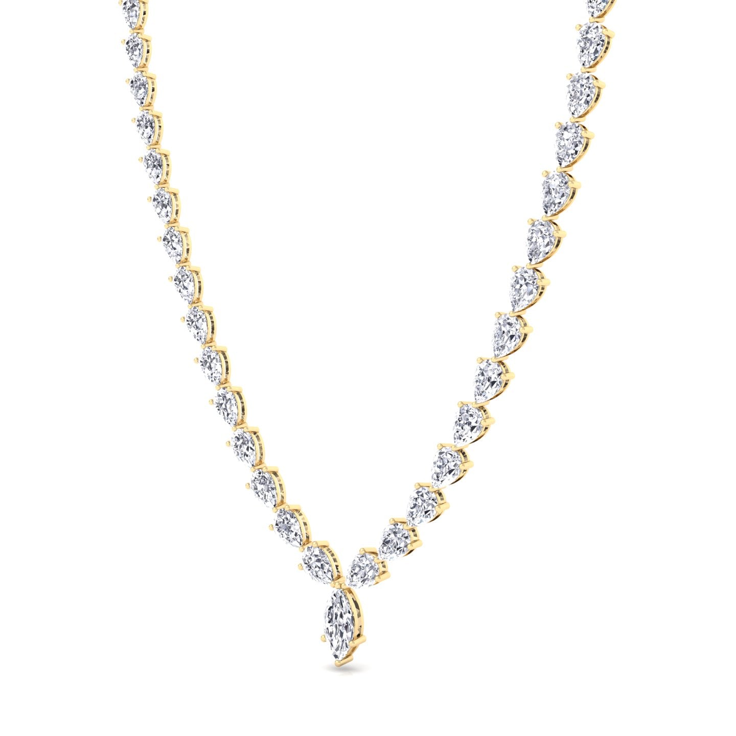 Pear Shape Natural Diamond Tennis Necklace Yellow Gold 15CT